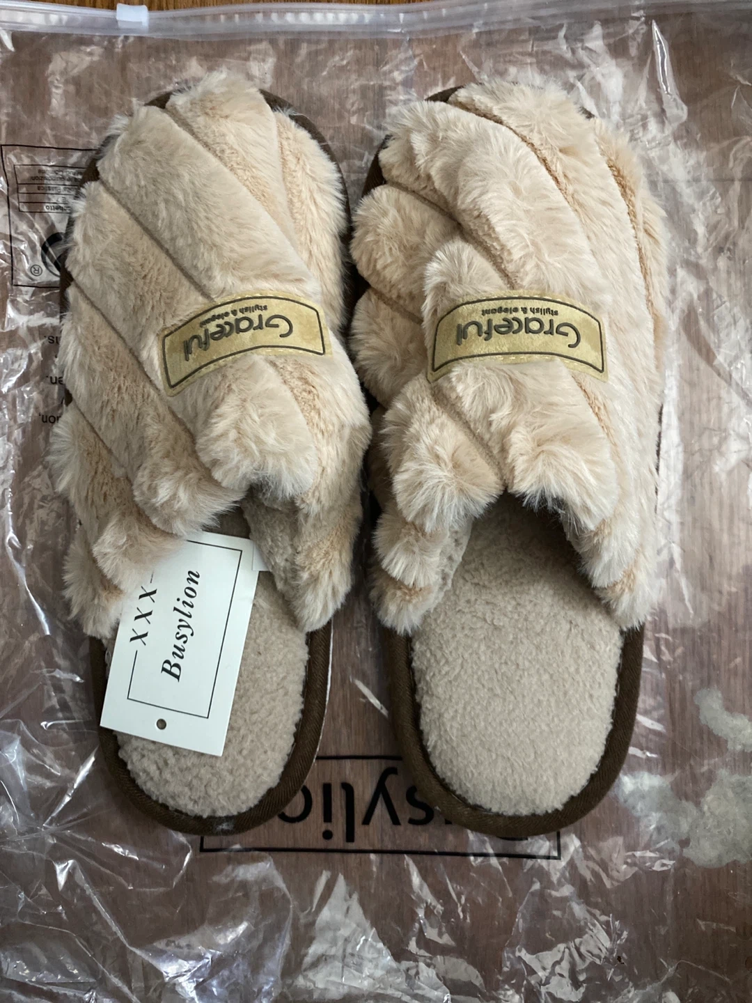 These Graceful stylish and elegant slippers are brand new and ready for a cozy home. They are super soft and comfortable. The tag shows the brand as Busylion.