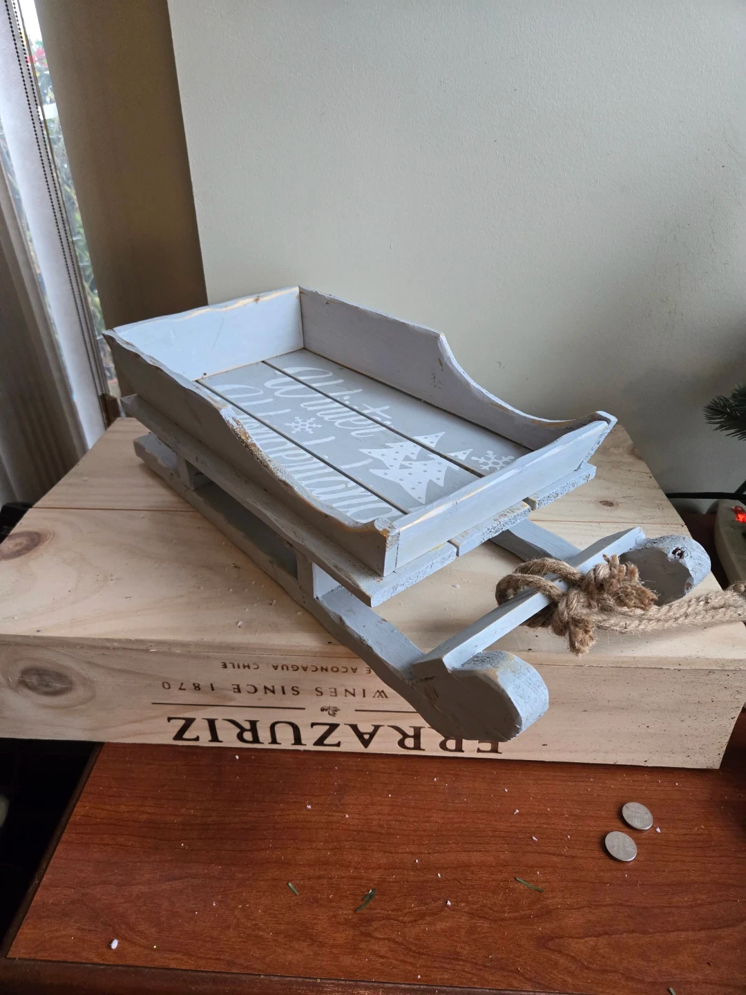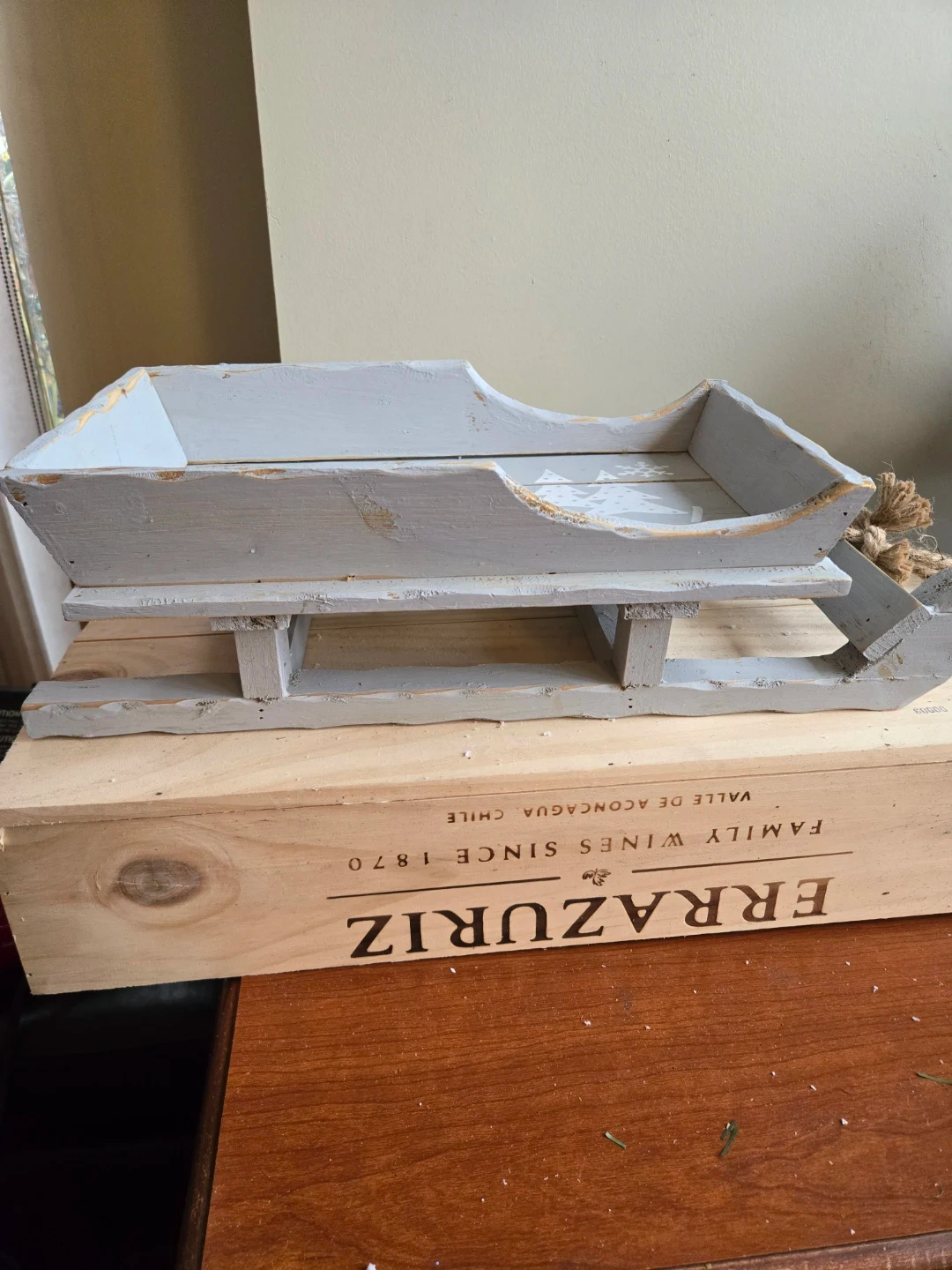 Selling a cute decorative wooden sleigh, perfect for adding a touch of winter charm to your home! It features a "Winter Wonderland" design painted inside. Great for displaying holiday decor or as a unique centerpiece