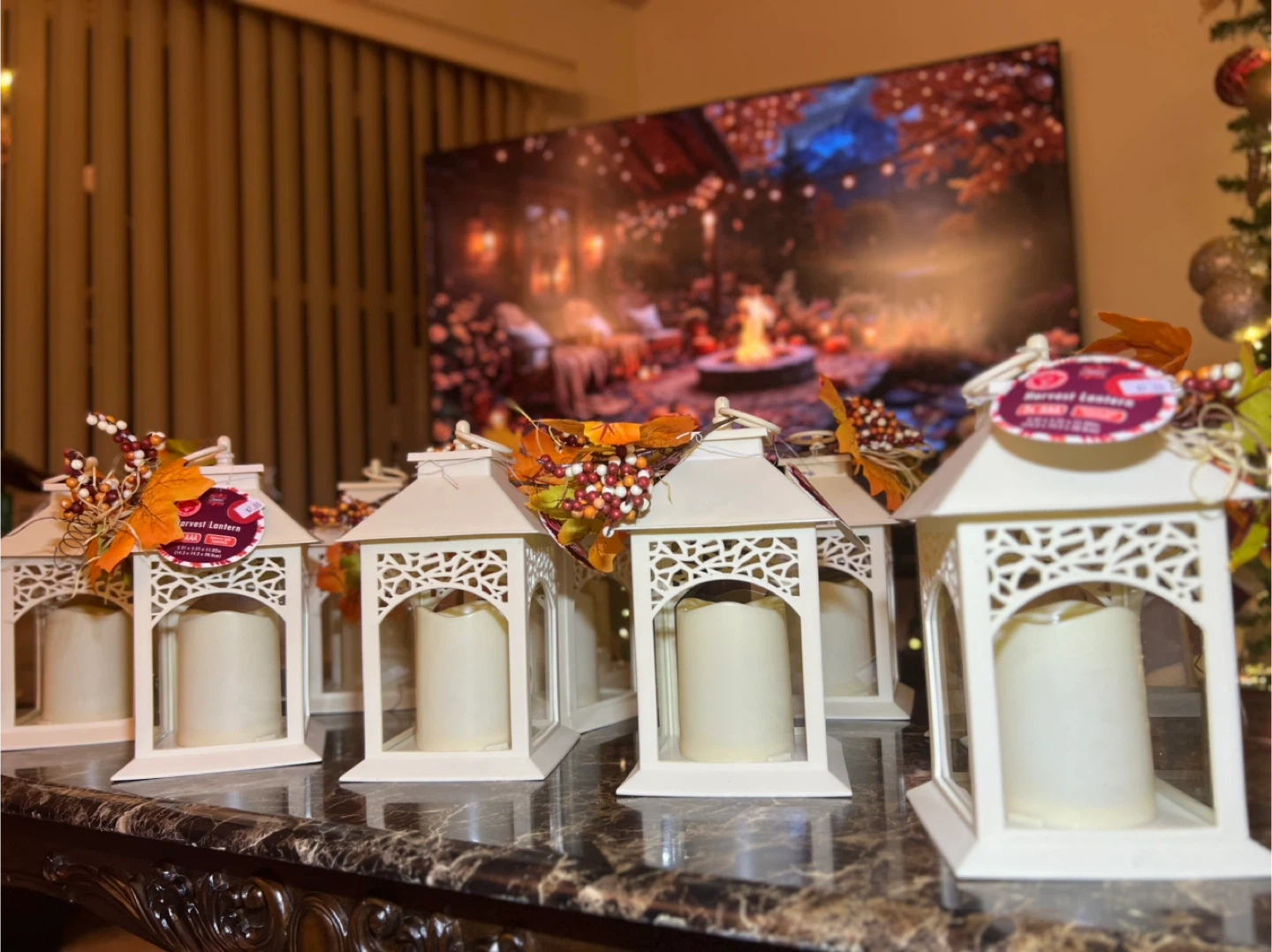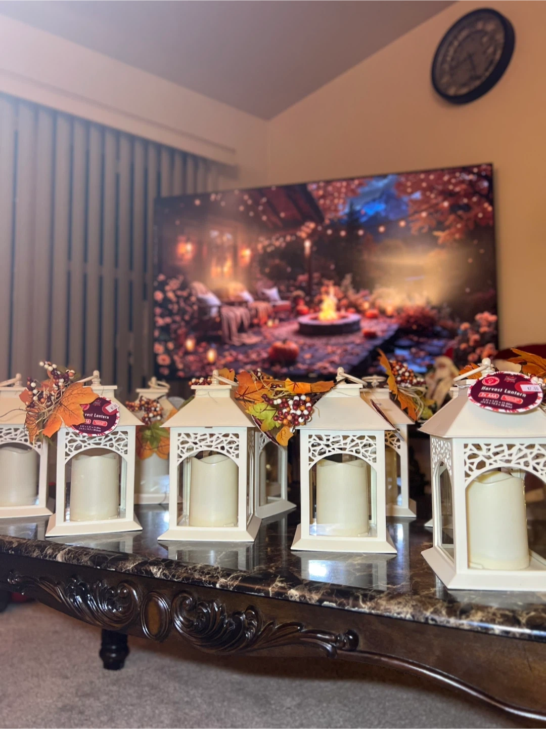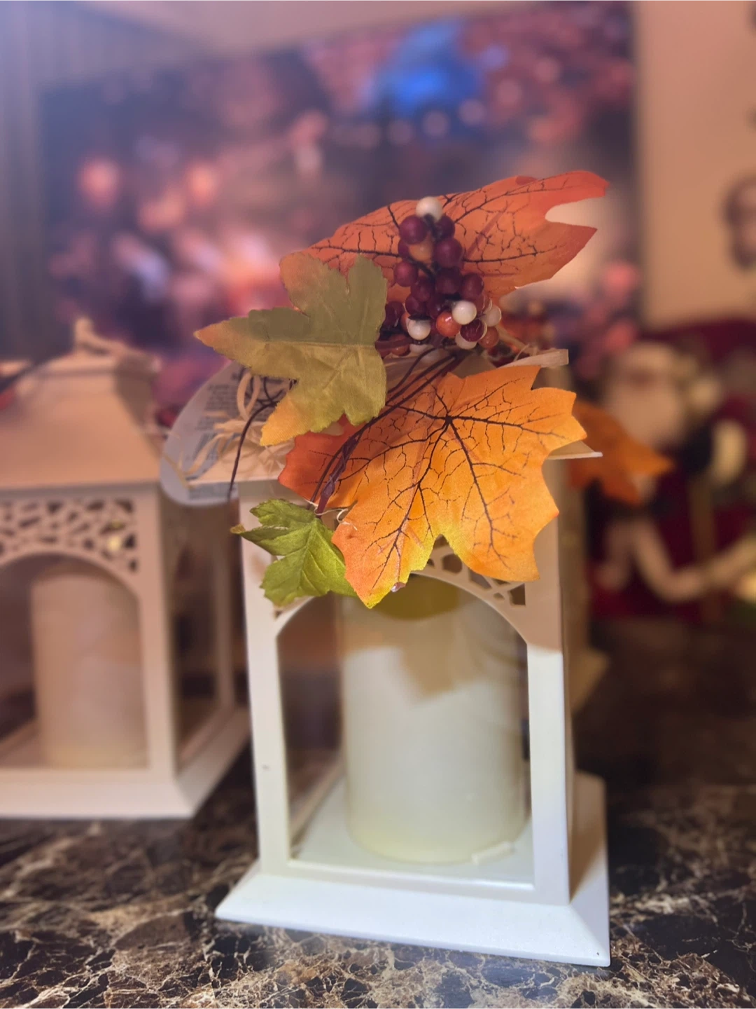 Add a touch of autumn charm to your home with these Harvest Lanterns! They come with a warm, inviting glow. The lanterns are decorated with fall leaves and berries for a festive look. Each lantern originally cost $7.00 . I have 10 of them for $20 all