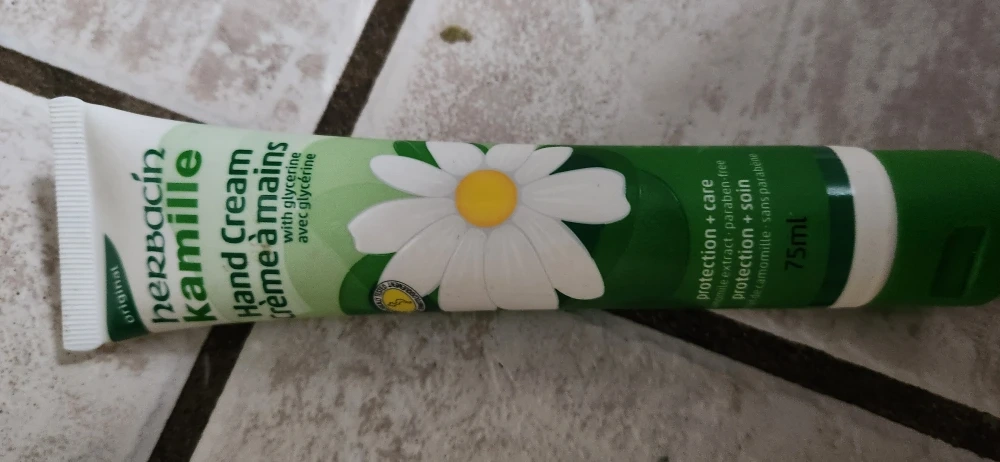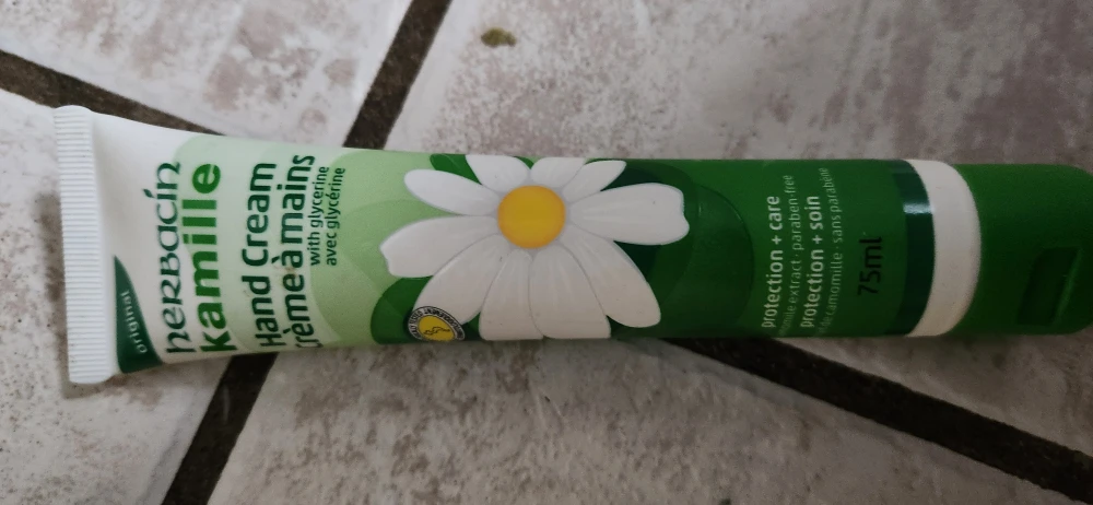 I'm selling a tube of Herbacin Kamille hand cream! It's a 75ml tube, perfect for keeping your hands moisturized. This hand cream has a lovely chamomile scent and includes glycerine for extra hydration. It's also paraben-free!