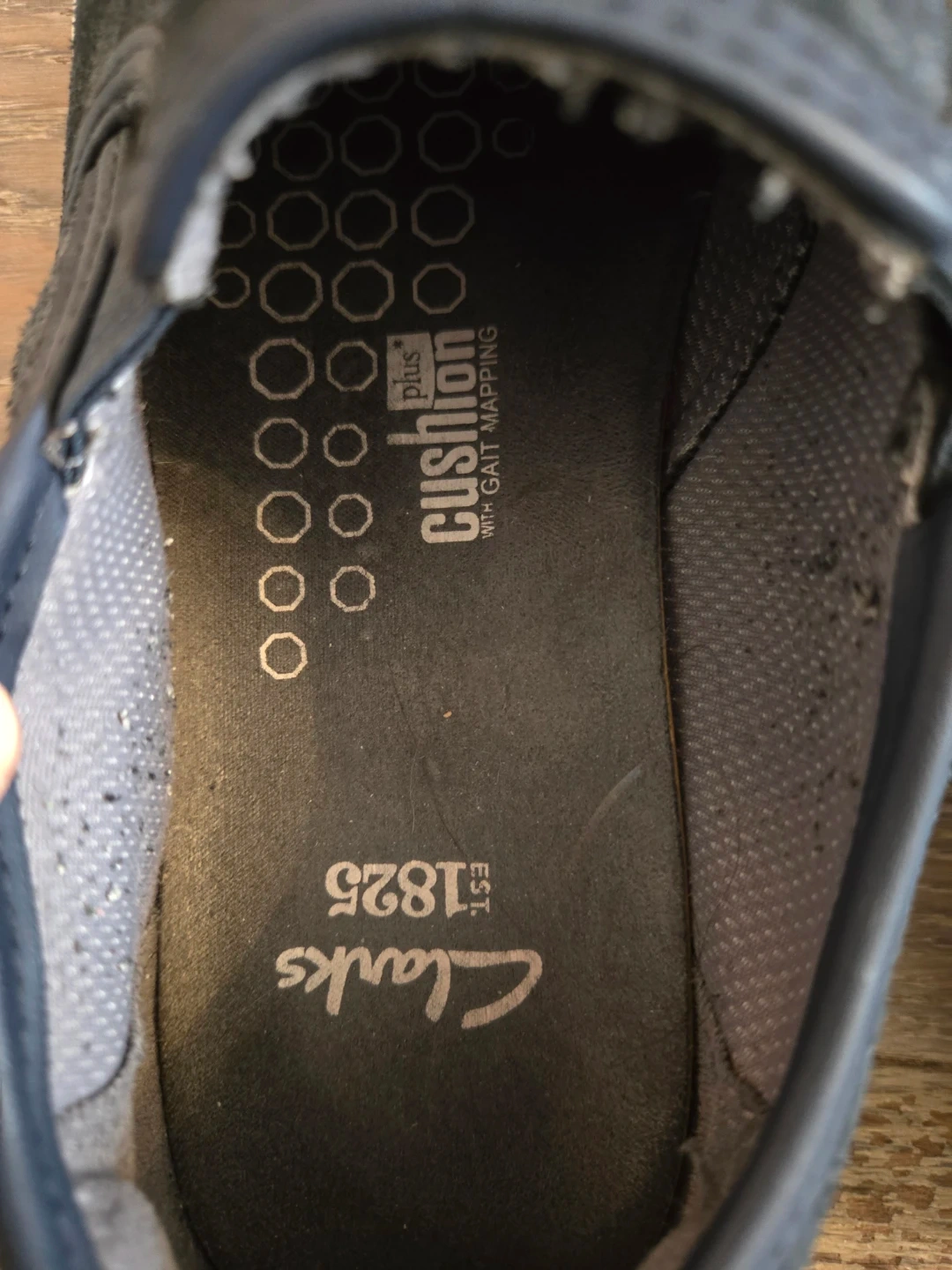 Selling a pair of Clarks 1825 men's slip-on shoes. They are a size 8.5 US. These shoes feature Cushion Plus with gait mapping for extra comfort. It is worn but it's got still more life to it. You can hand wash the shoes to clean them up!