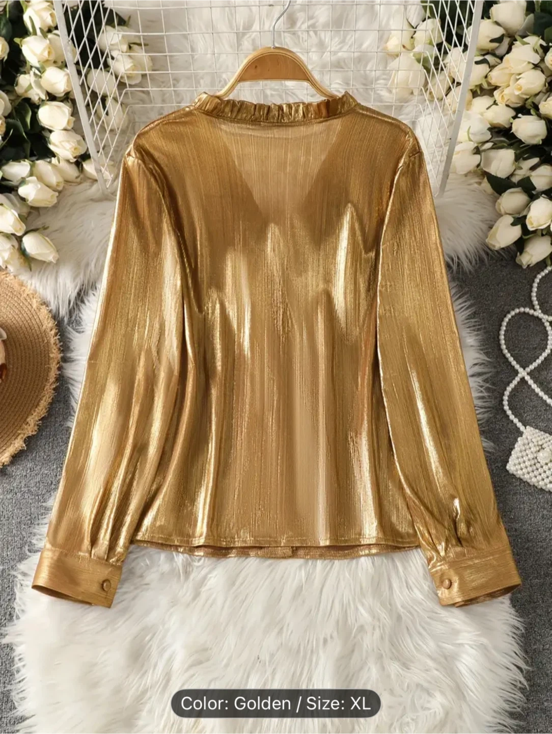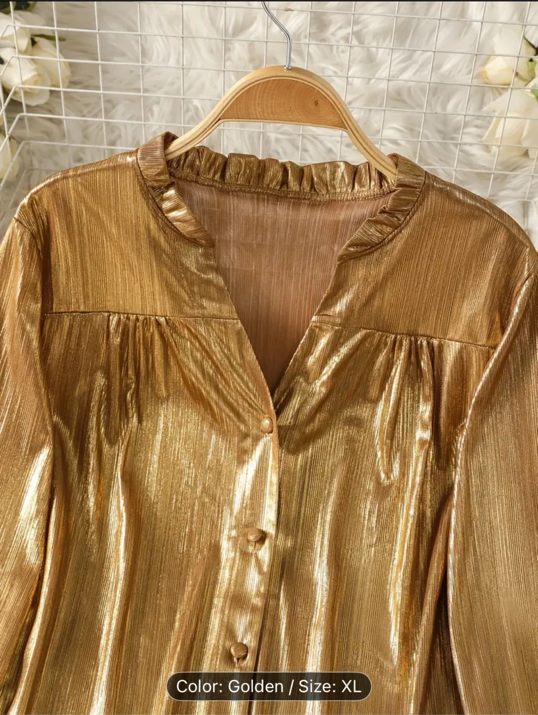 Golden Button-Up Blouse - Size XL