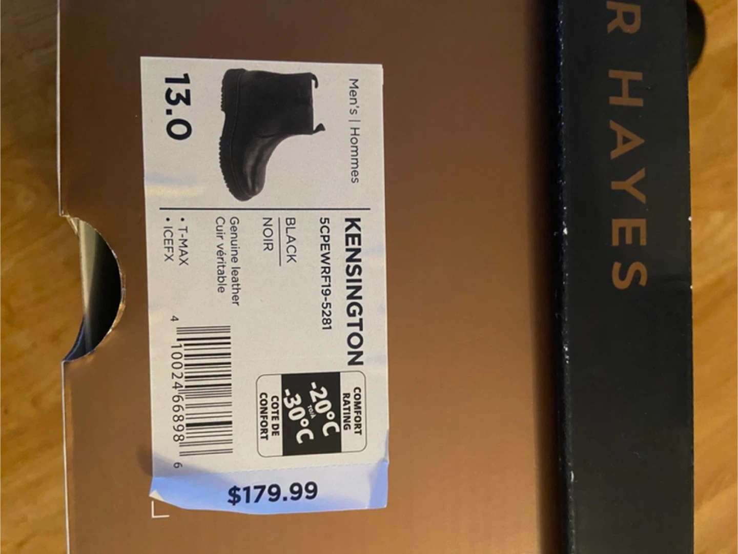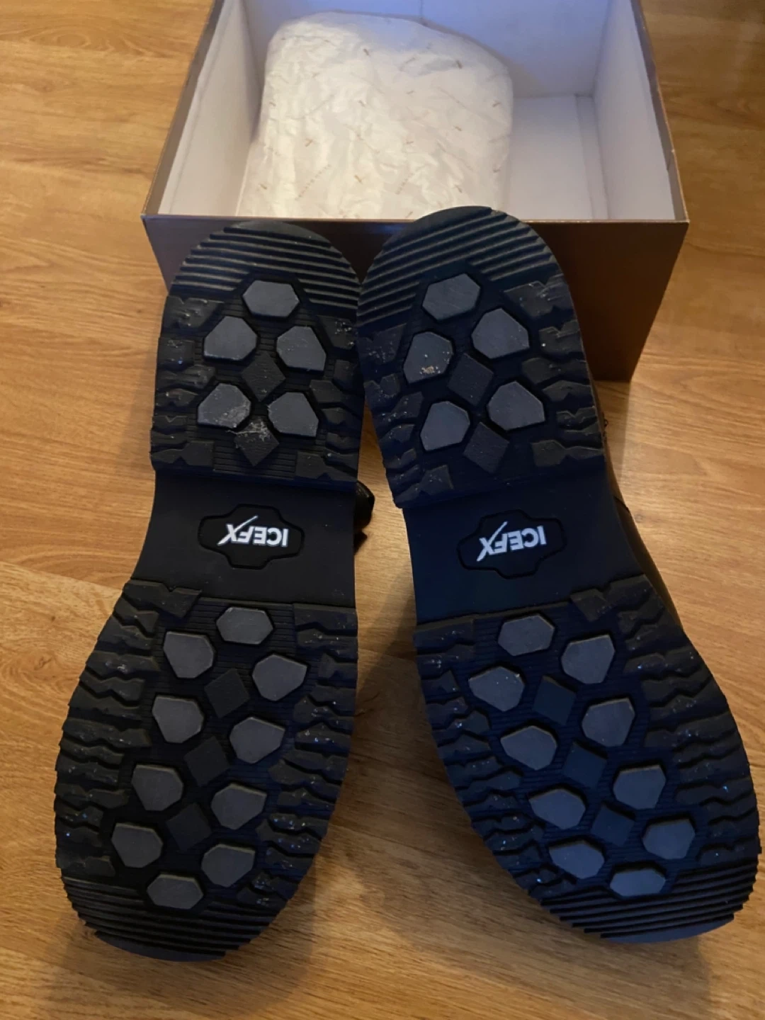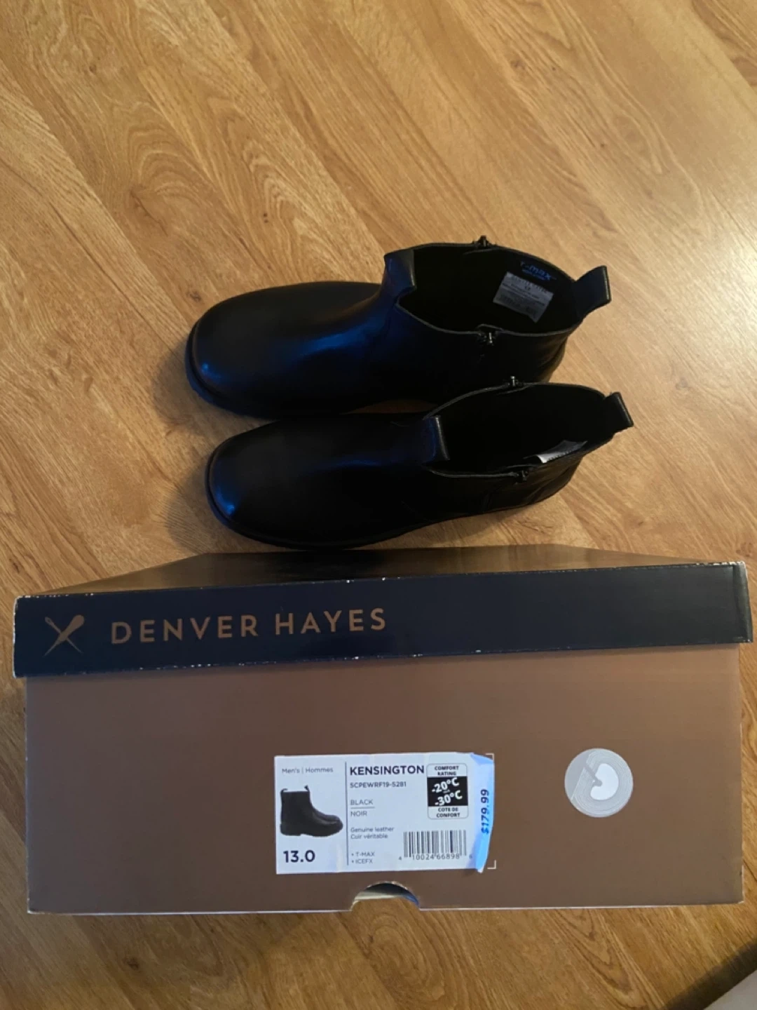 Selling a pair of Denver Hayes men’s leather boots with T-max Insulation, in black, size 13. They are in excellent condition and come with the original box. These boots feature ICEFX soles for great traction!