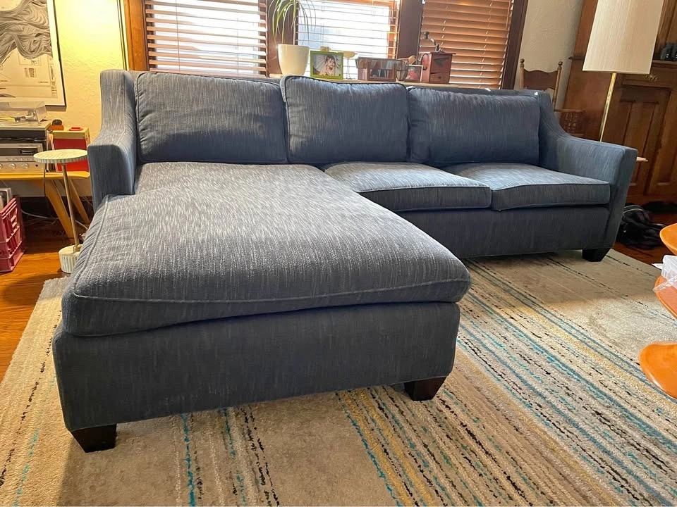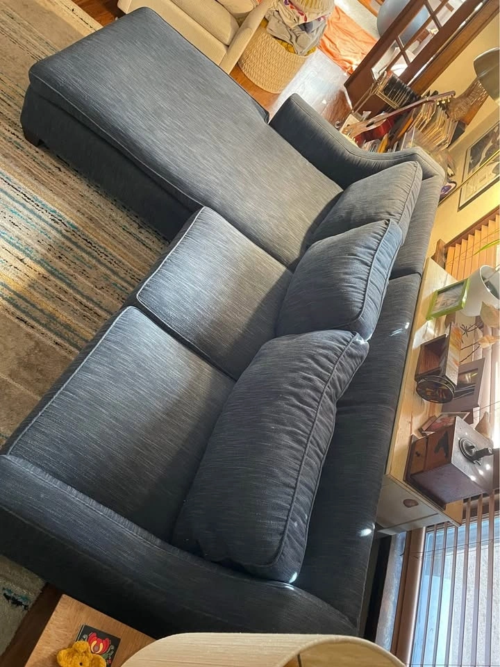 Nothing wrong with this super comfy couch we’re just changing it up. It’s built sturdy and is lighter than it looks.