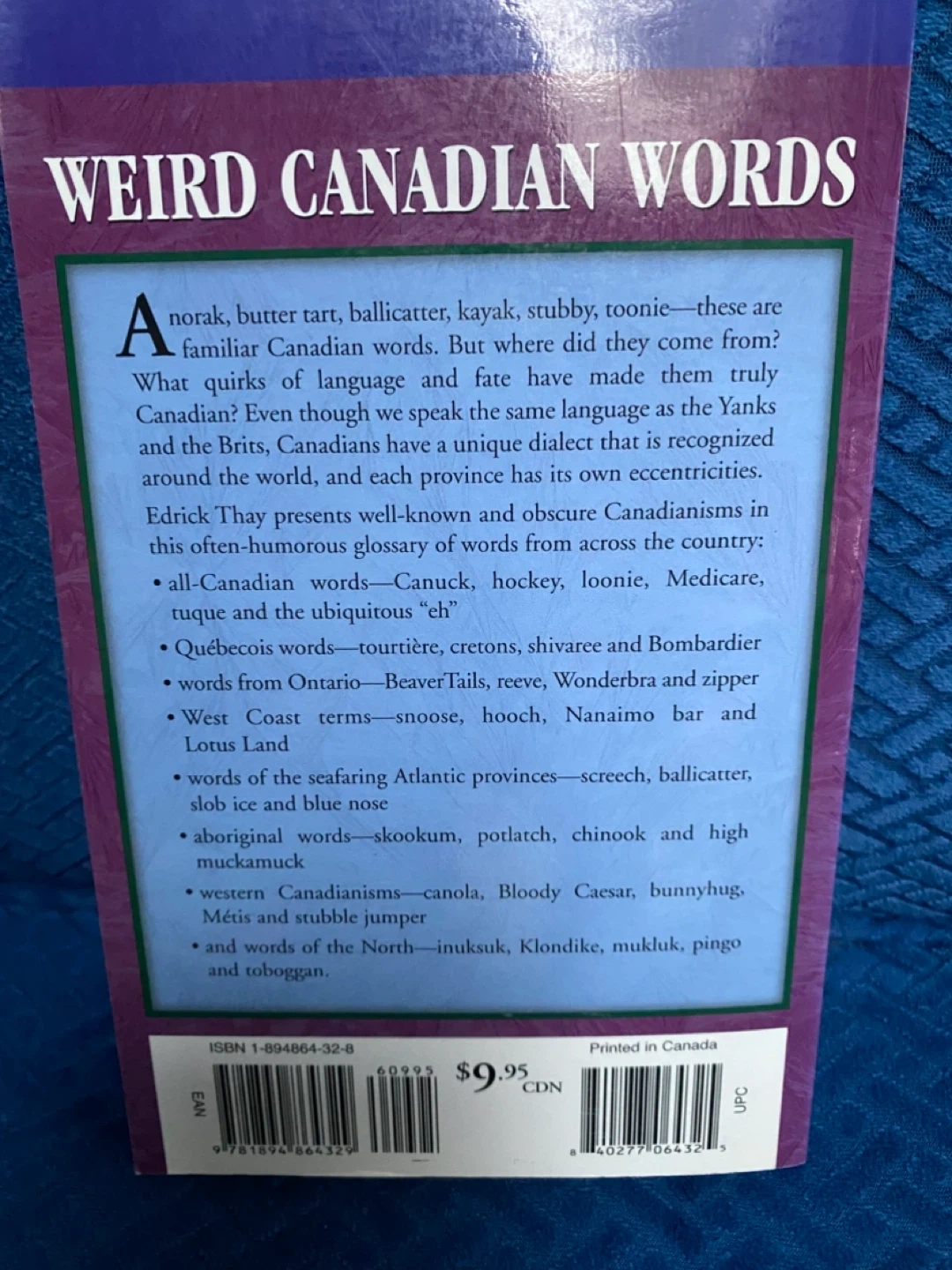 Selling a copy of "Weird Canadian Words: How to Speak Canadian" by Edrick Thay! It's part of the Great Canadian Stories series and is a humorous glossary of words from across the country. Originally bought for $9.95 CDN
