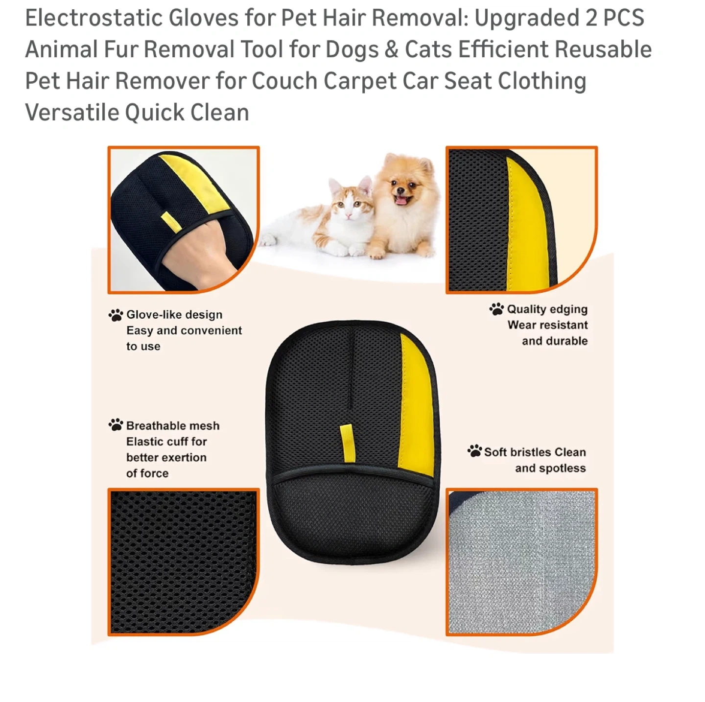 Upgraded 2 PCS Animal Fur Removal Tool for Dogs & Cats. Efficient Reusable Pet Hair Remover for Couch Carpet Car Seat Clothing. Versatile Quick Clean. It effectively removes both hair and dirt. Special Design Dual Directional Bristles. Washable and Reusable. Clean crevices and corners, easy adsorption, and clean hair