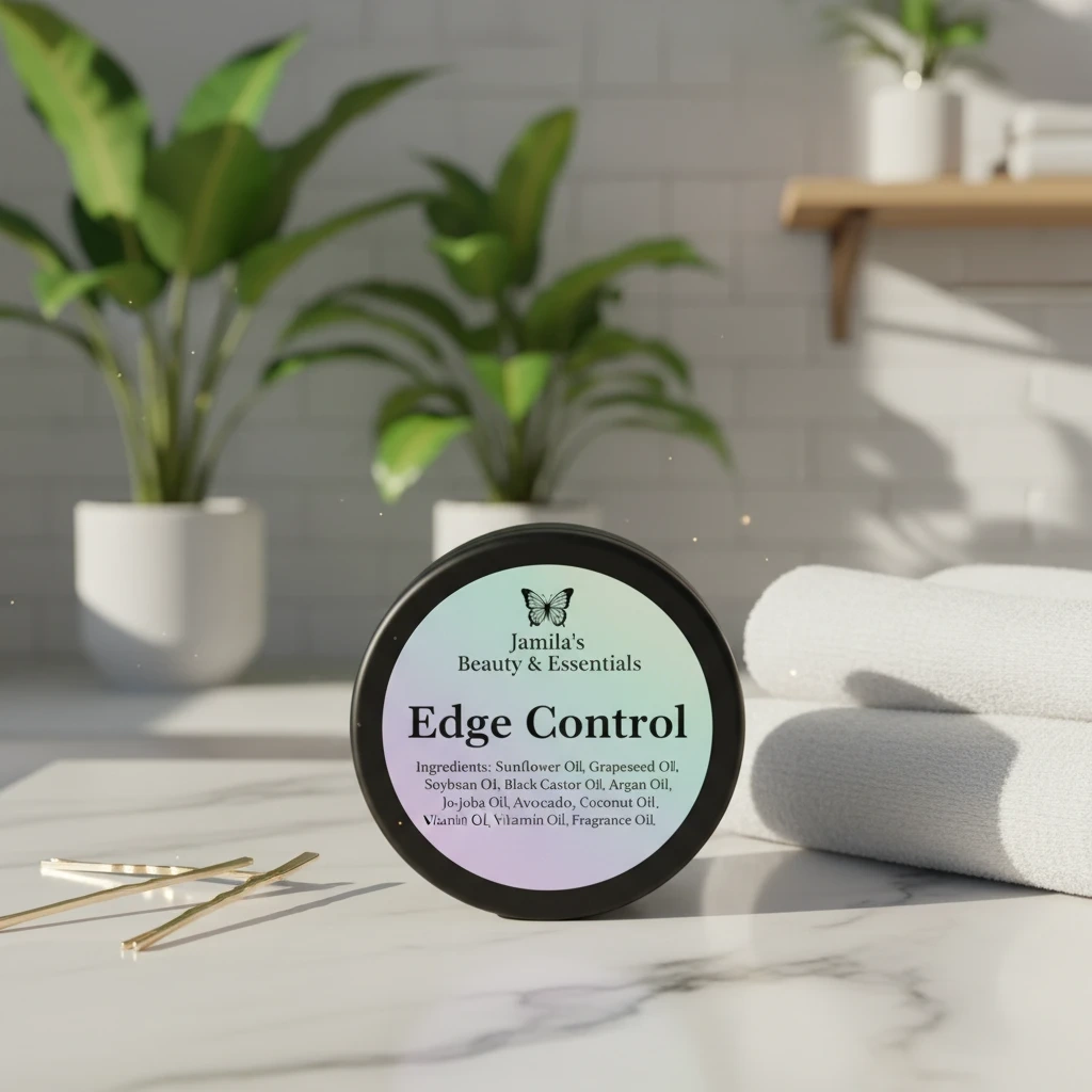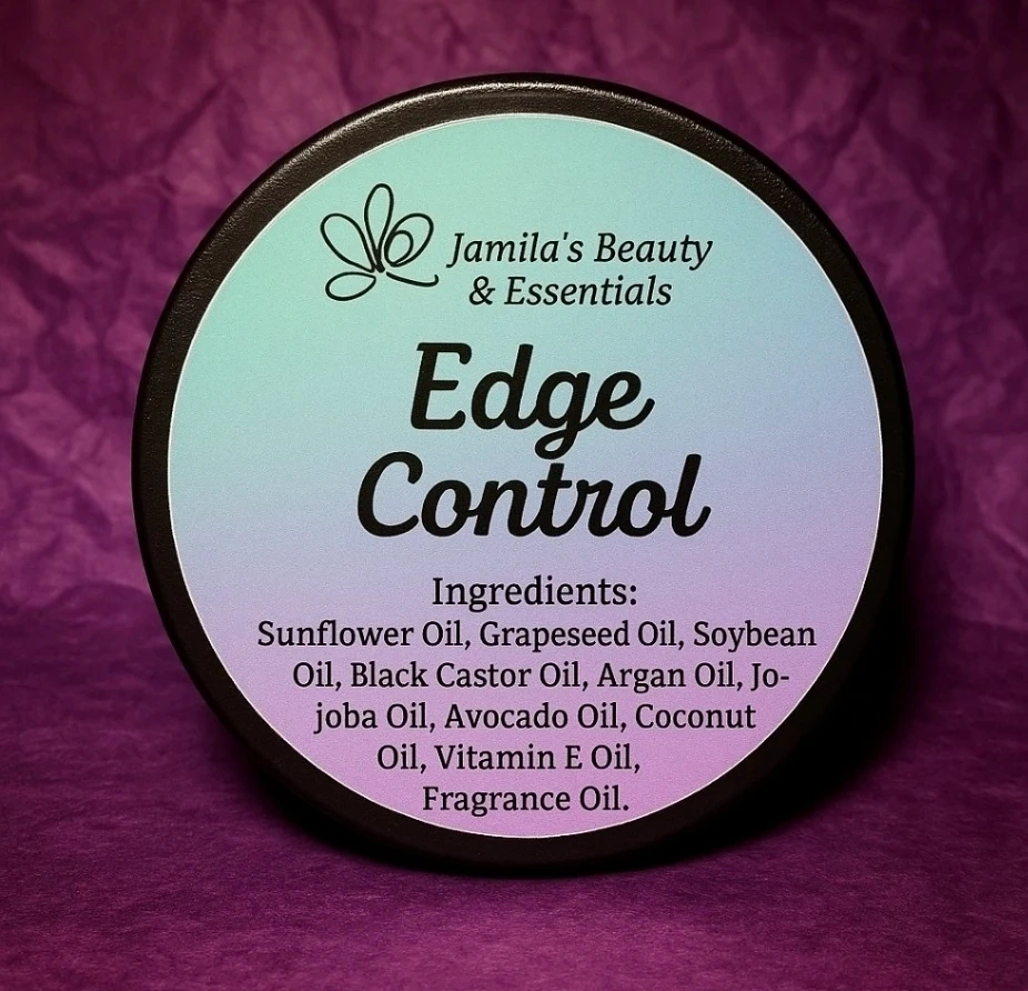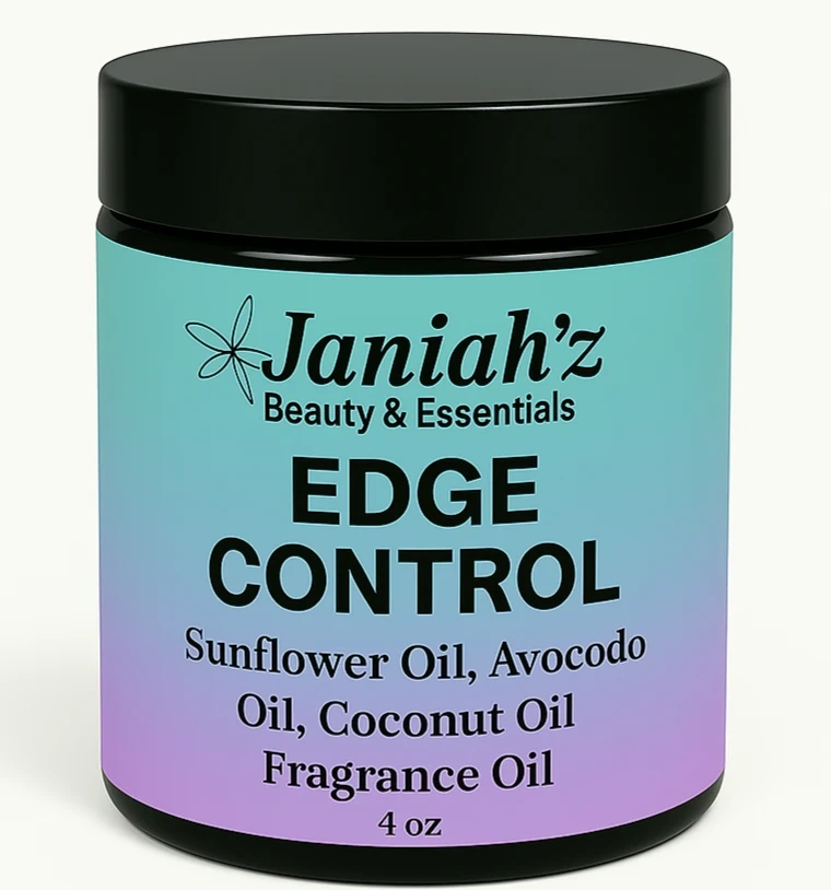 I'm selling Janiah'z Beauty & Essentials Edge Control! It's a 4 oz container, perfect for keeping your edges sleek and smooth. The ingredients include sunflower oil, avocado oil, and coconut oil.