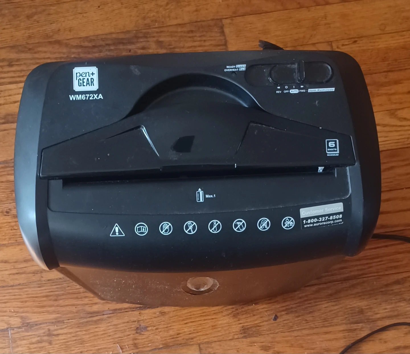 Selling a Pen+Gear WM672XA paper shredder. It's in good working condition and ready to help you securely dispose of sensitive documents