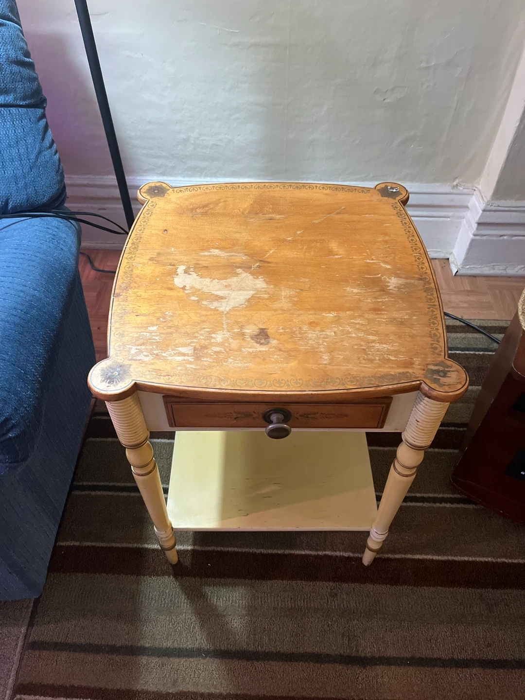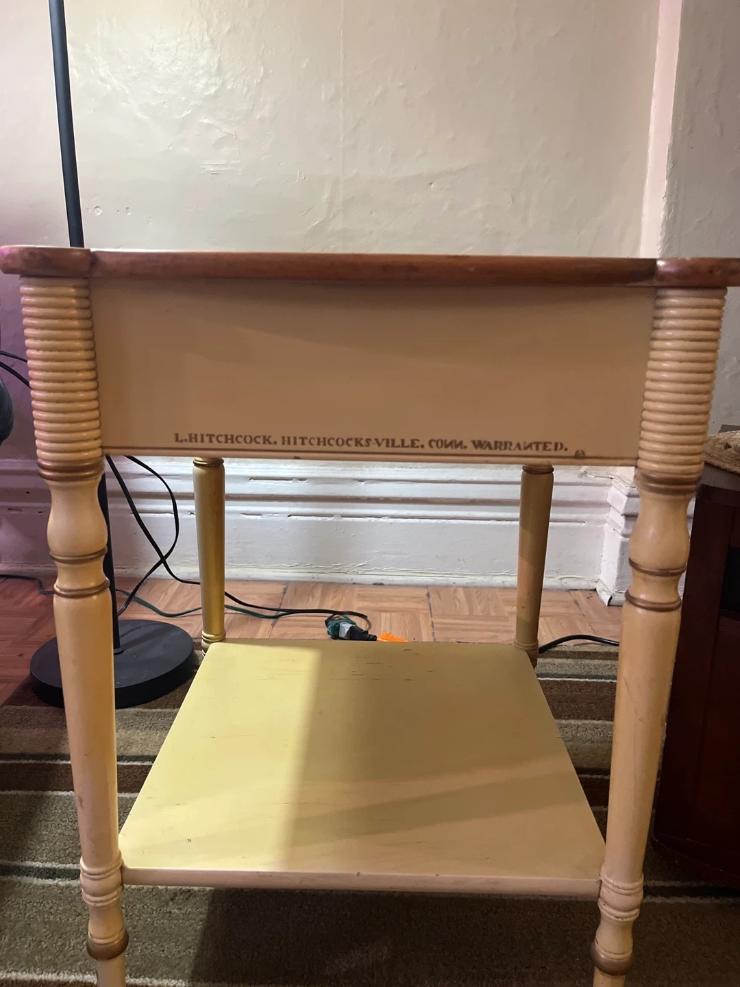 Selling a vintage L. Hitchcock end table! It has a unique design and is a charming piece for any room. It does show some signs of wear, but that adds to its vintage character