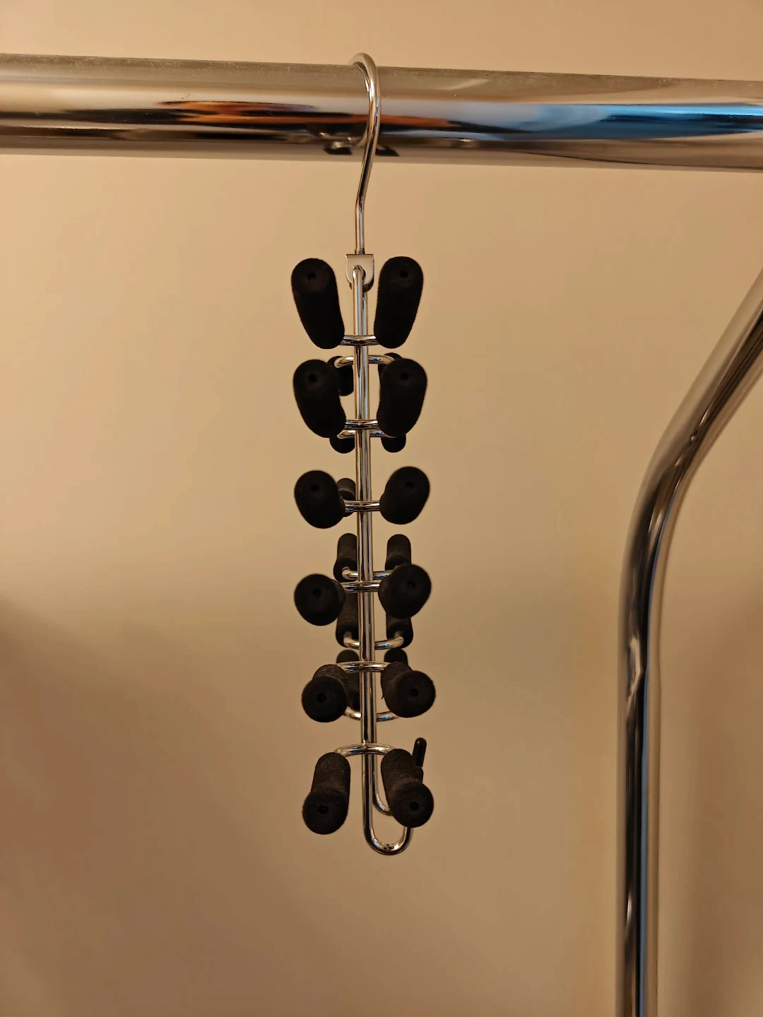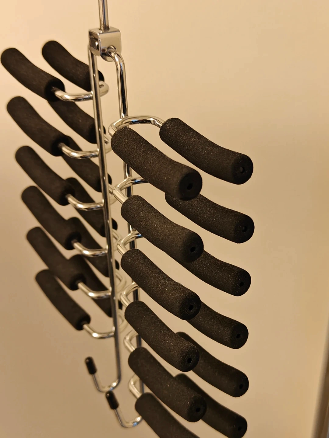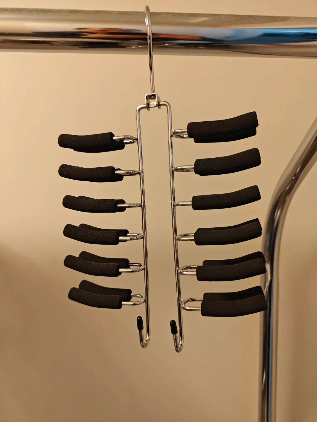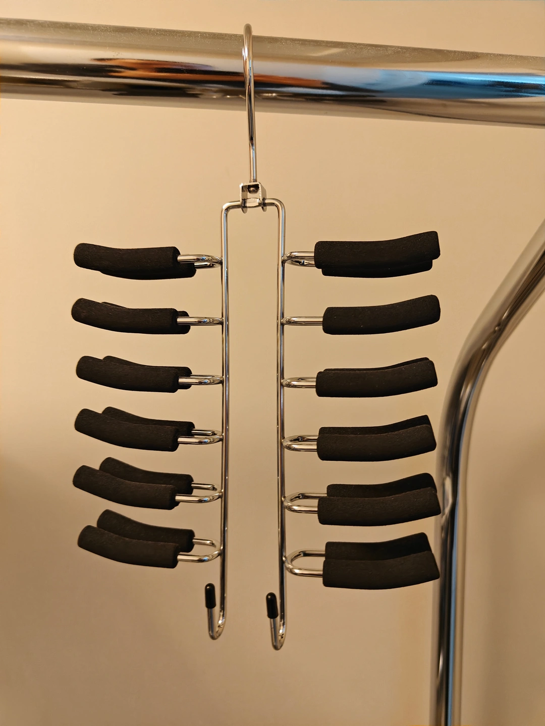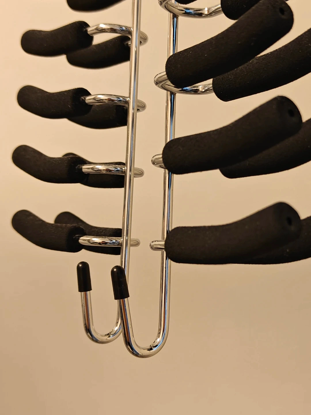 * Premium High Quality Chrome Tie Hanger: These tie hangers are made of a durable chromed steel with shed-proof EVO foam pads on 24 steel pegs. The non-slip construction ensures that the ties will stay on the hangers and will not slip and fall off.