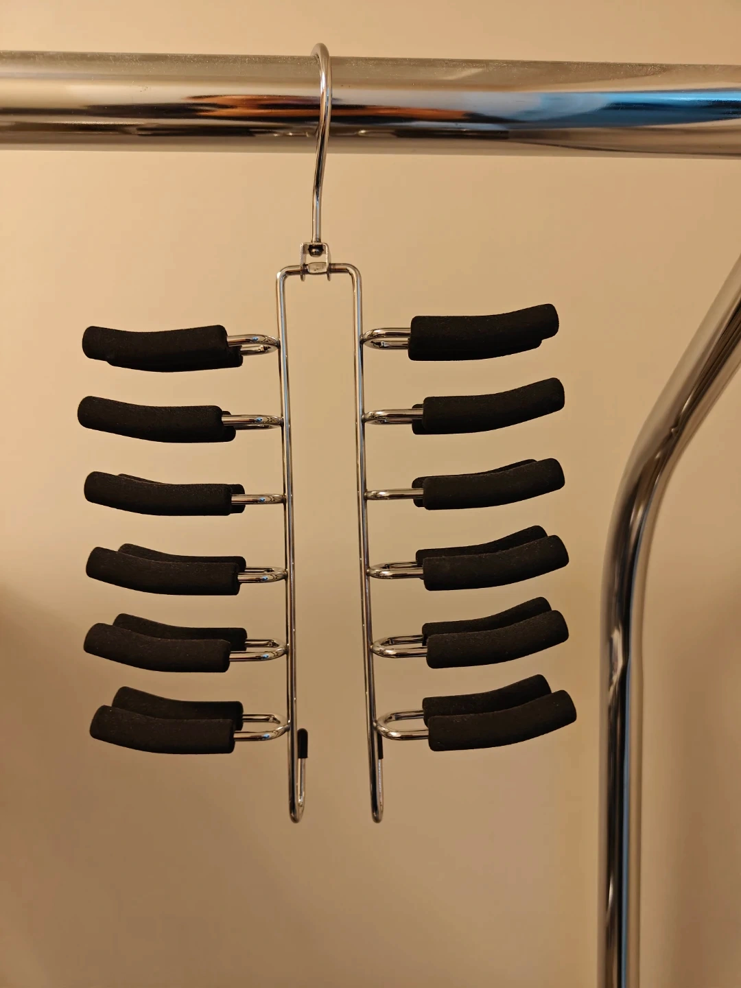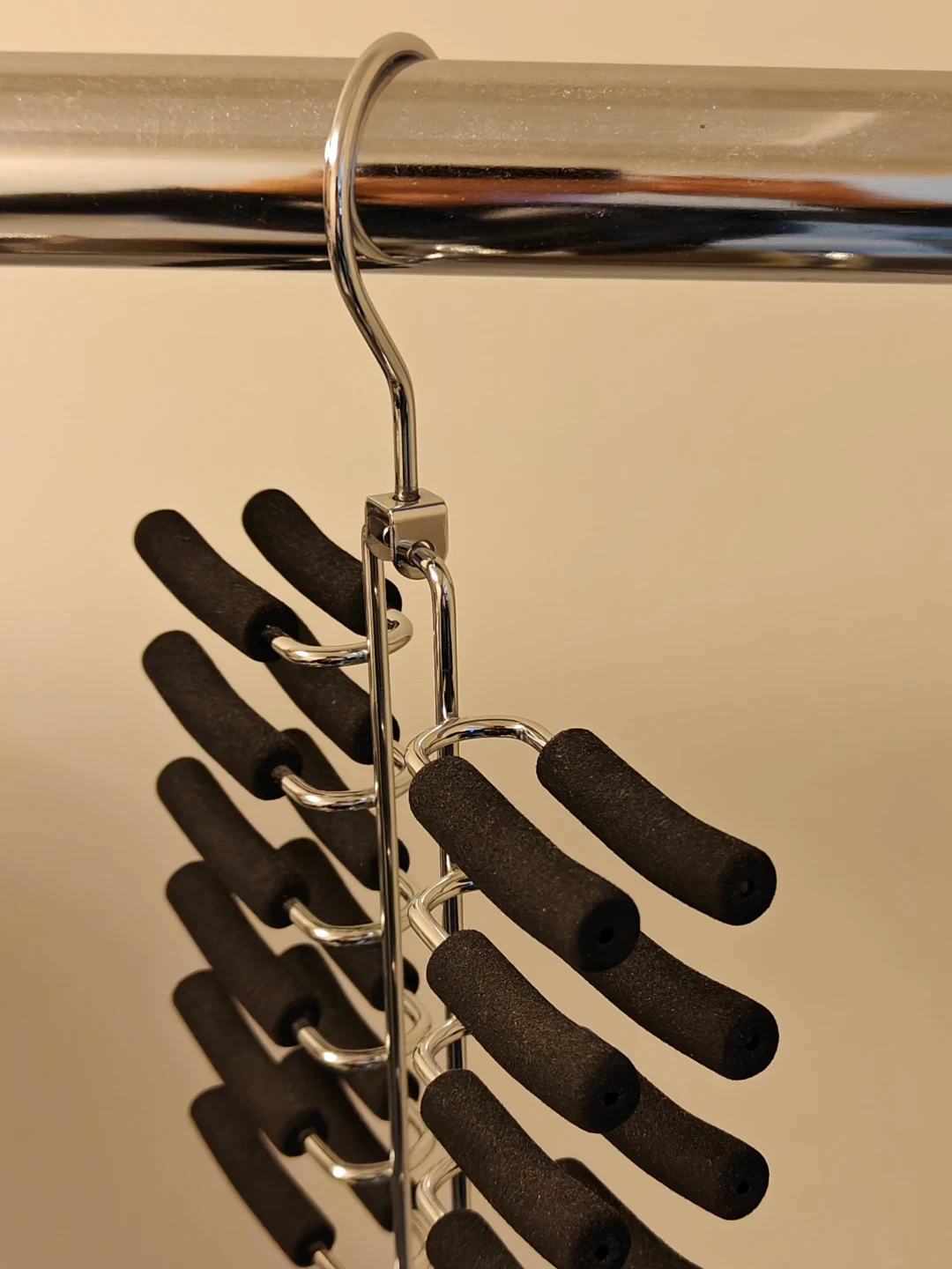I am selling a 24 Tie Organizer Rack Hanger with Padded Foam and 360 Chrome Swivel Hook with 2 Pegs for Belts and Scarves in used, excellent condition.
