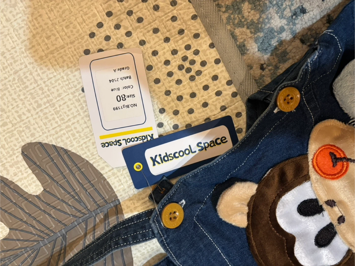 Super cute Kidscool Space denim overalls with a monkey design! They're in great condition and ready for a new little one. The size is 80 and the colour is blue