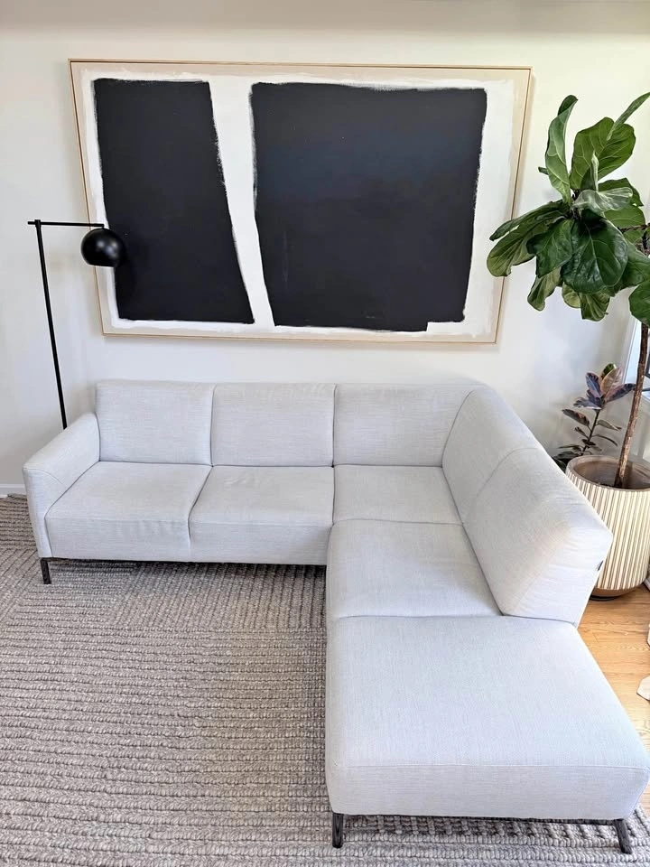 Size : 2 pieces total L shape sectional measures 34” D x 31” H and seat measures 15” from the ground.