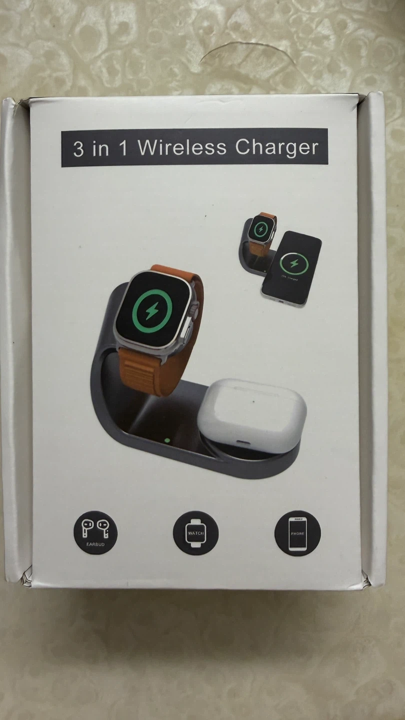 brand new 3 in 1 wireless charger! It's designed to charge your earbuds, watch, and phone all at the same time. Perfect for keeping your devices organized and charged up