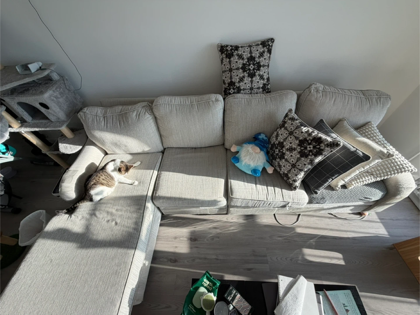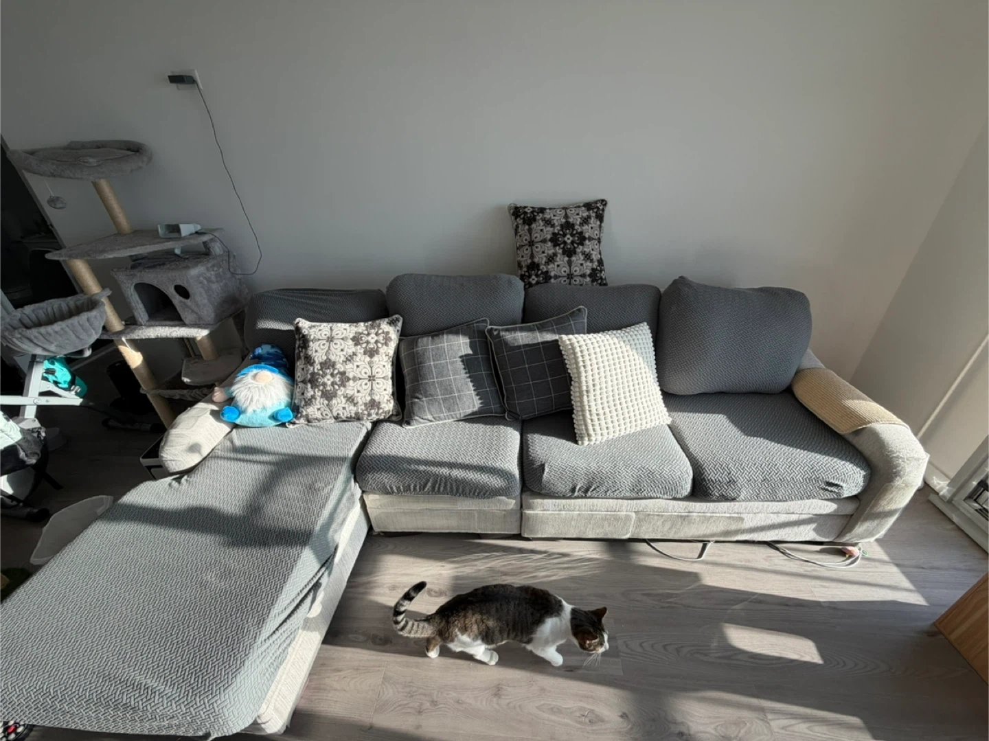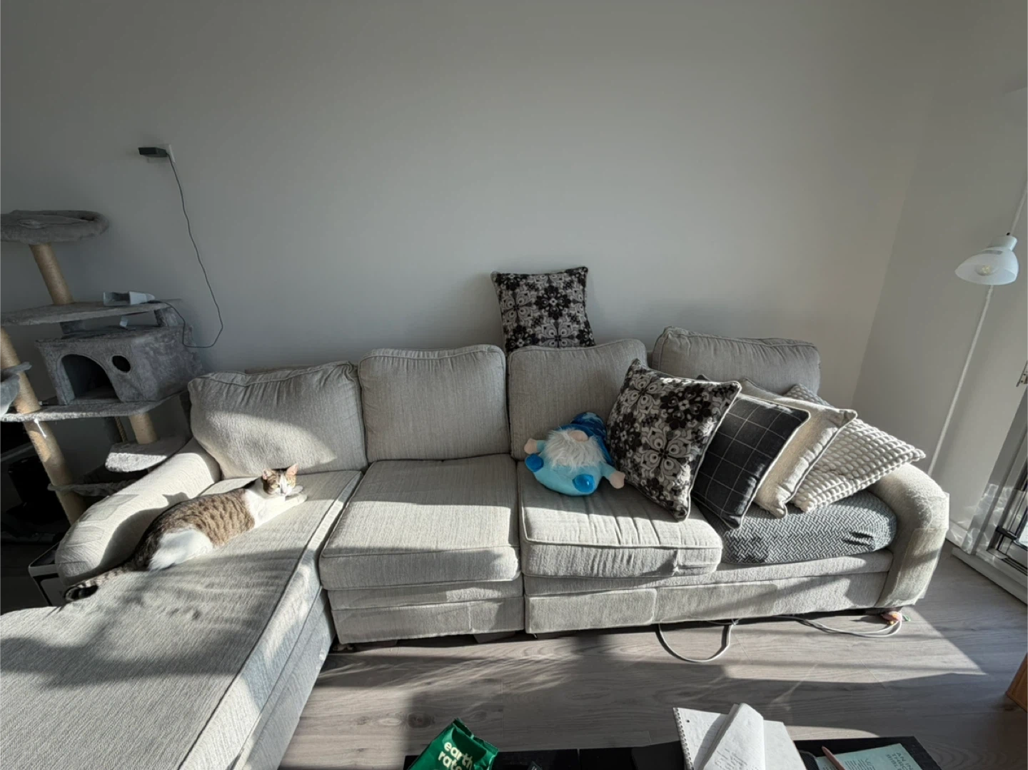 Selling a comfortable sectional sofa from Raymour Flanigan. It's in great condition and ready for a new home. Perfect for lounging and entertaining! Cat not included 😂