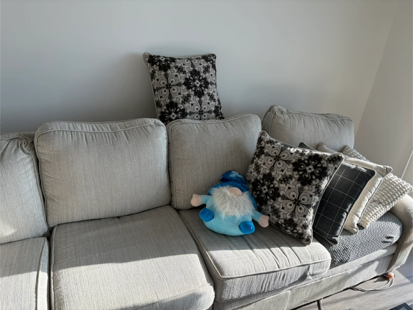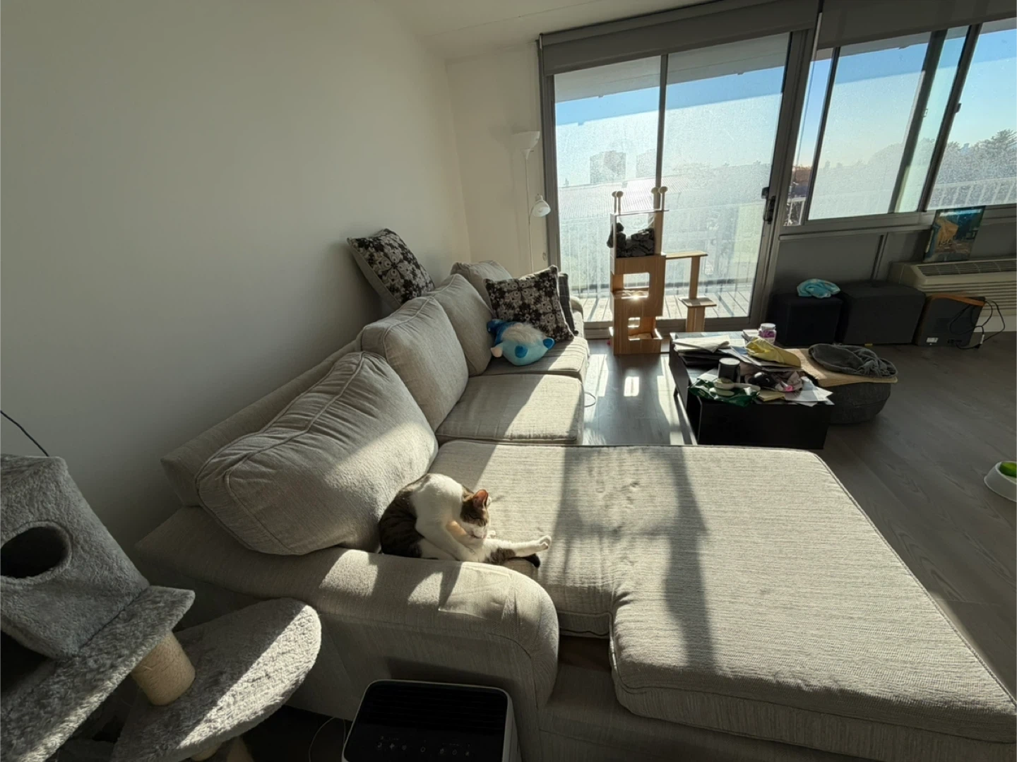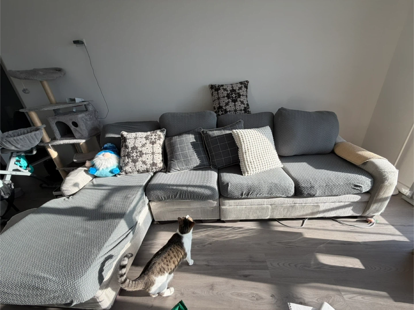 Selling a comfortable sectional sofa from Raymour Flanigan. It's in great condition and ready for a new home. Perfect for lounging and entertaining! Cat not included 😂