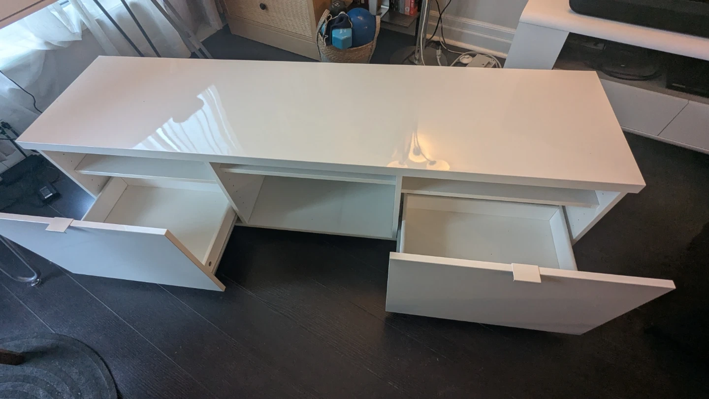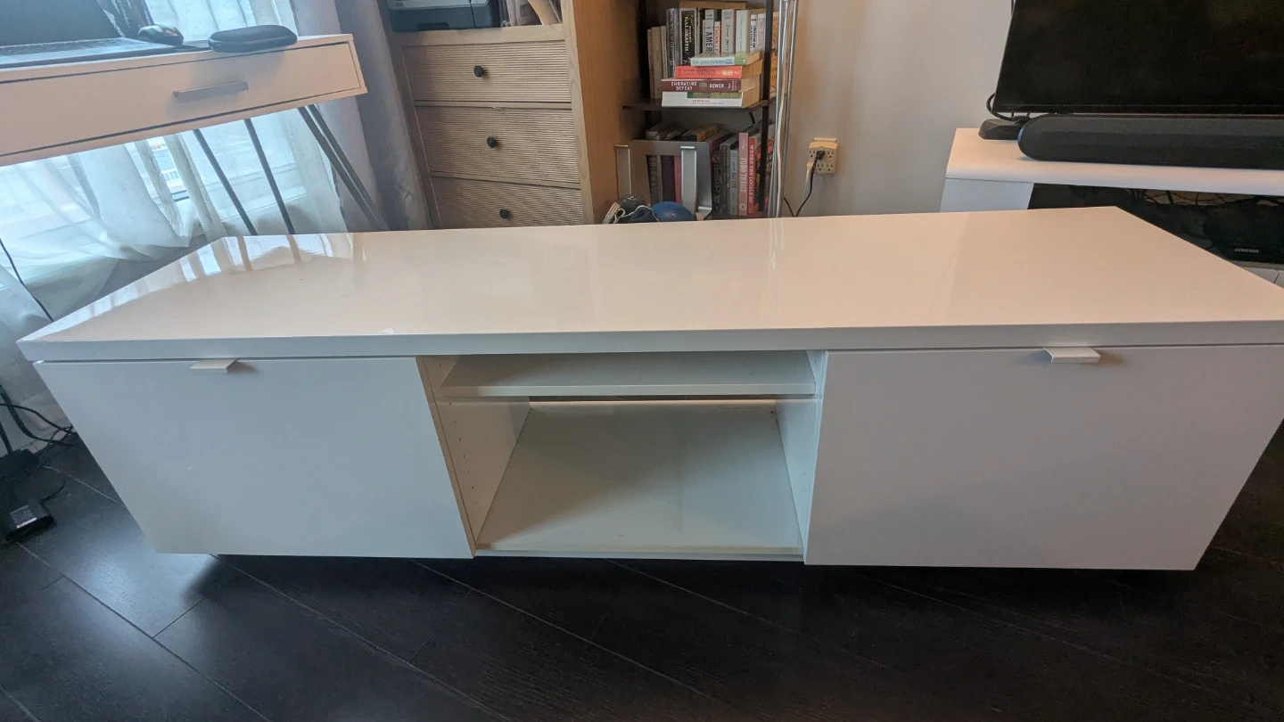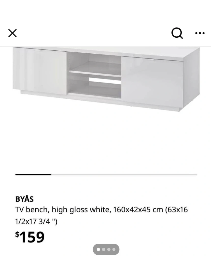 Selling an excellent condition IKEA BYÅS TV bench in high gloss white! It's in great shape and ready for a new home. Dimensions are 160x42x45 cm (63x16 1/2x17 3/4 "). Originally bought for $159. Priced to sell, so please don't send me a lowball offer.