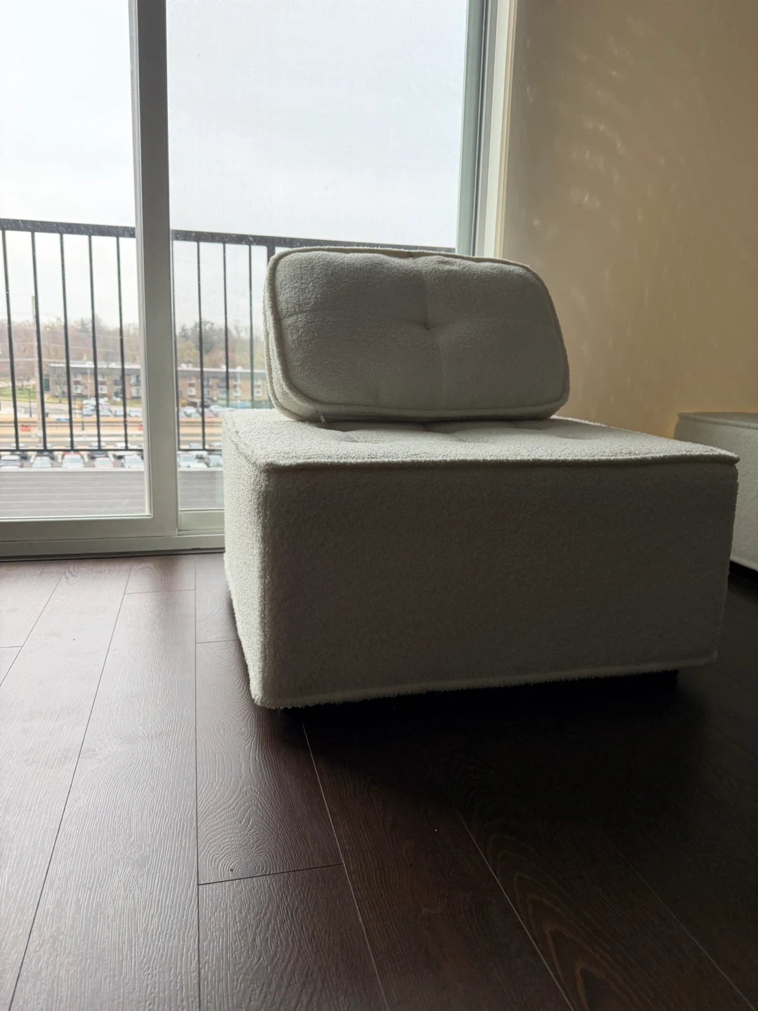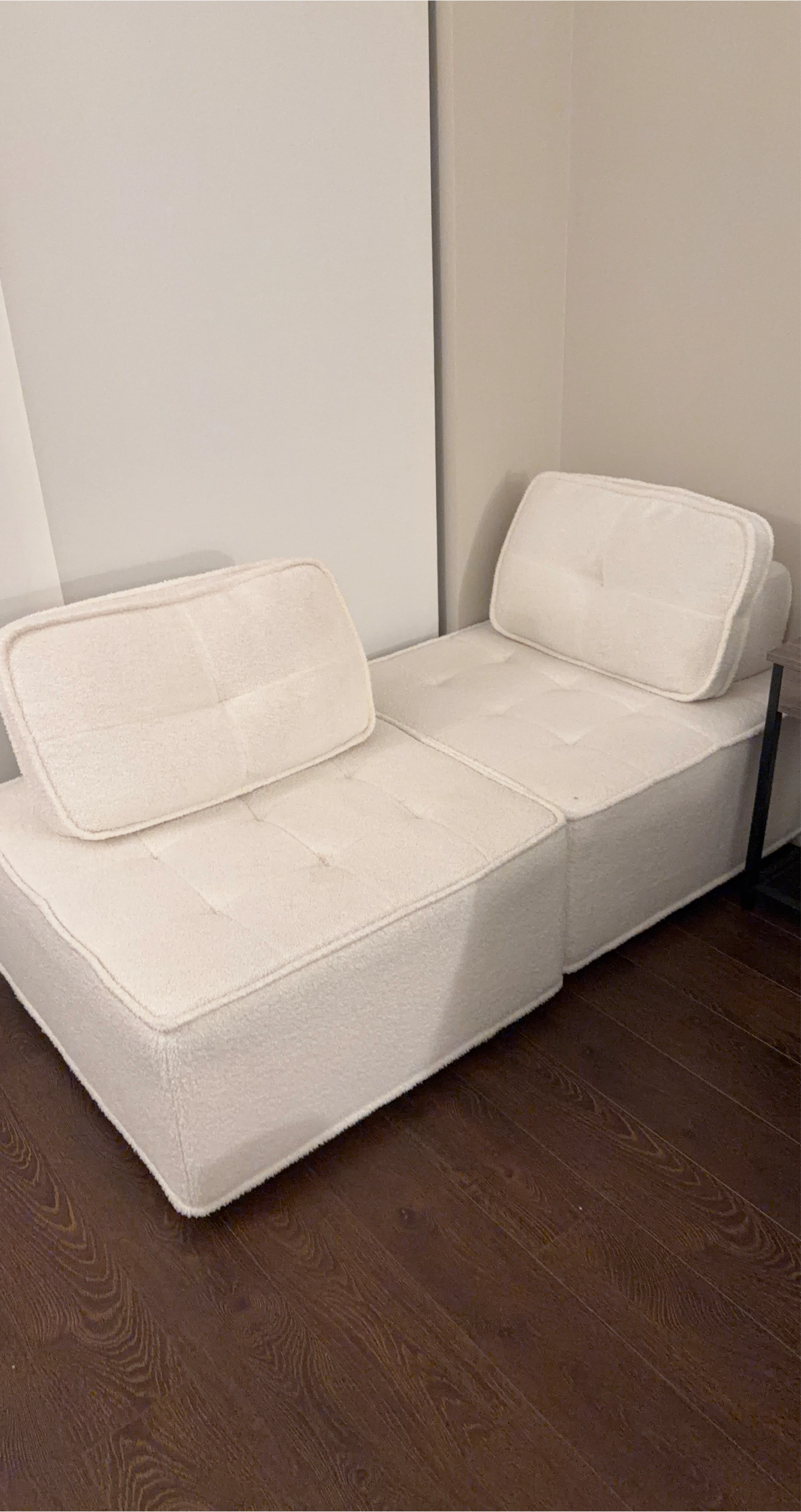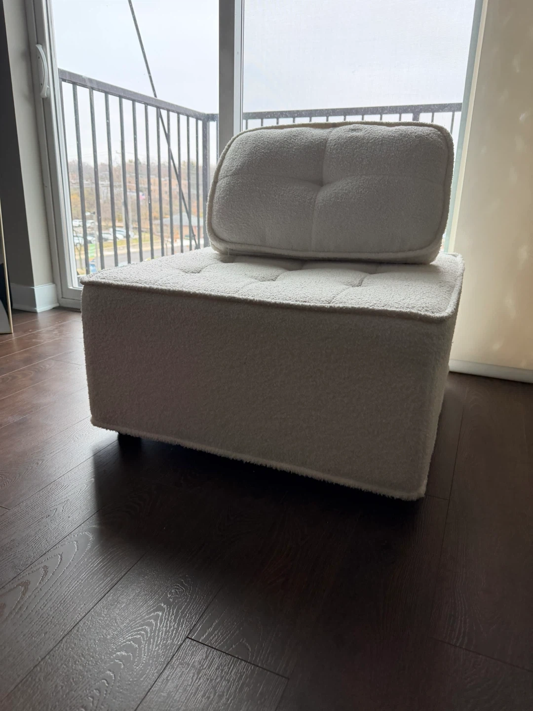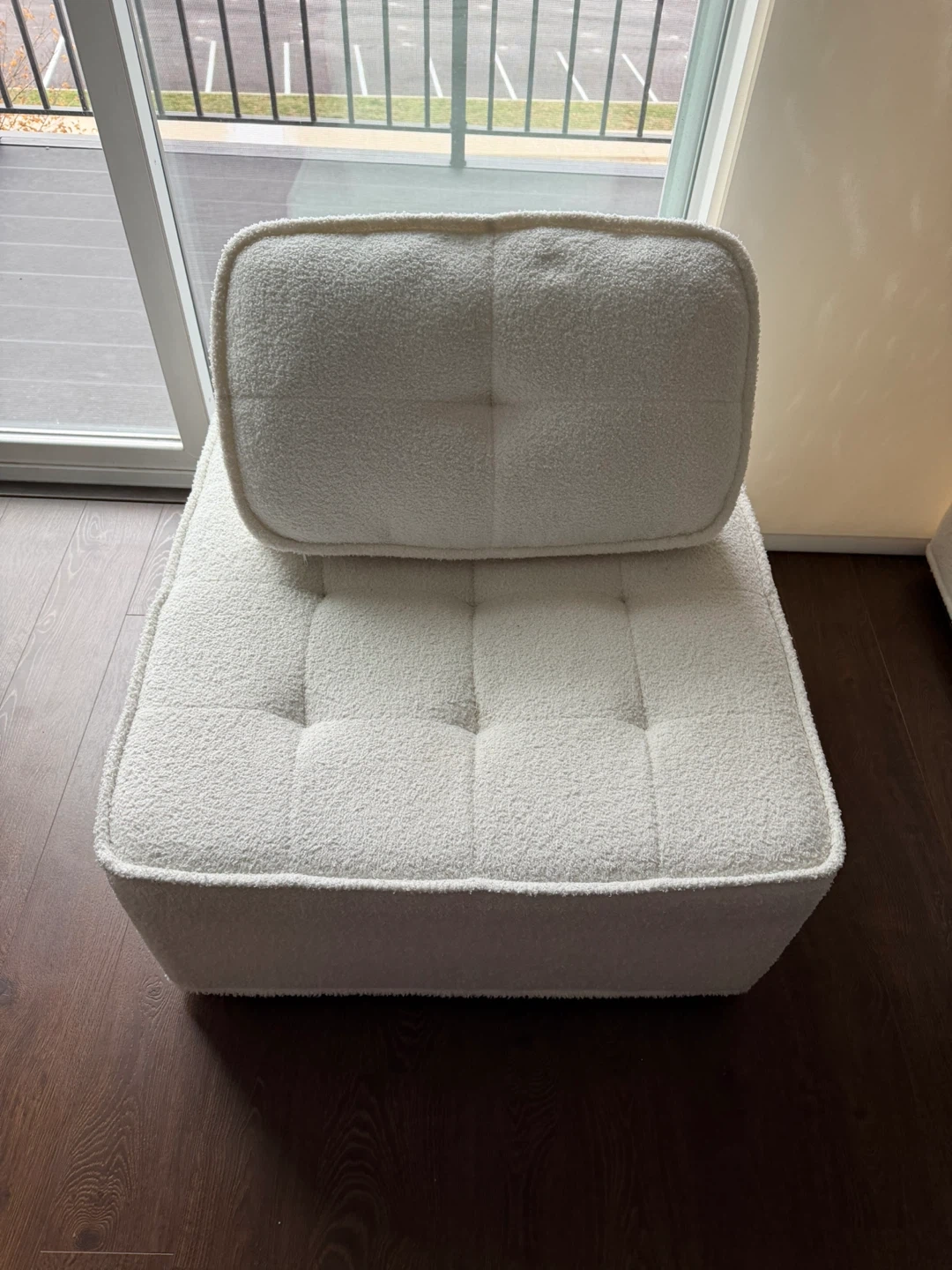Selling a 3-piece modular sectional sofa in excellent condition. Features a modern, minimalist design with a soft bouclé fabric that adds a cozy yet upscale look to any living space.