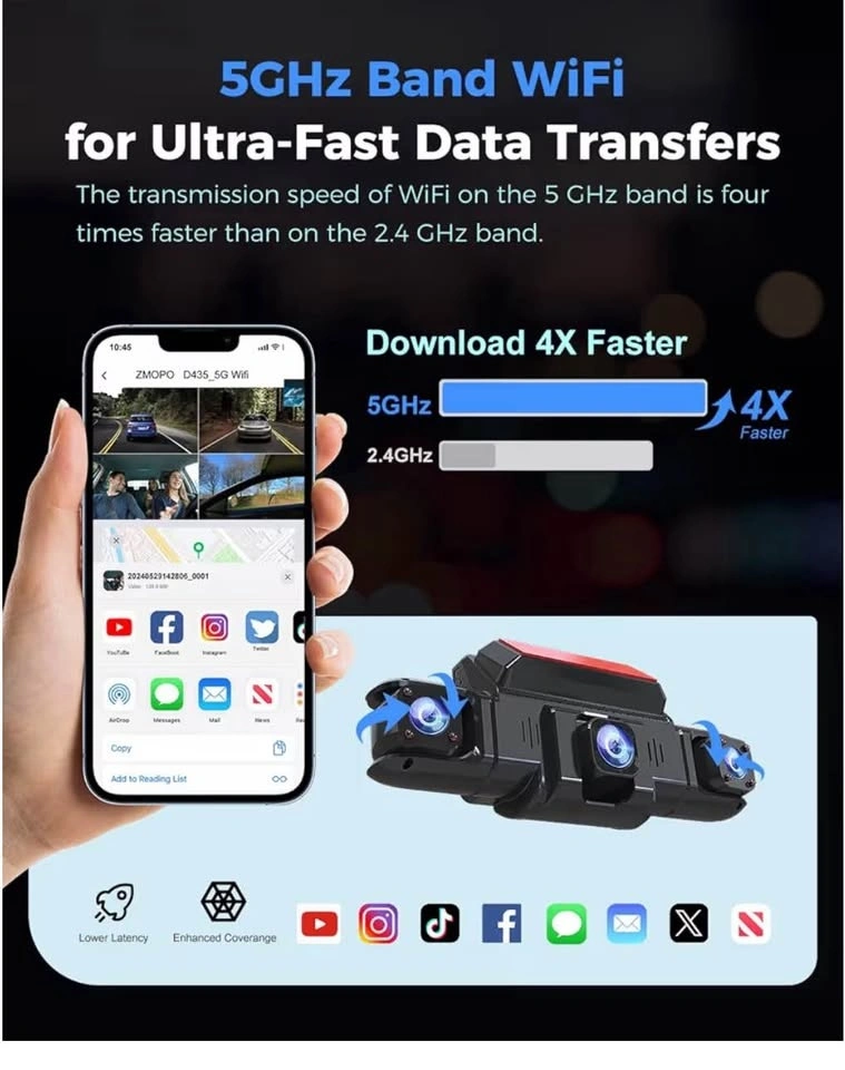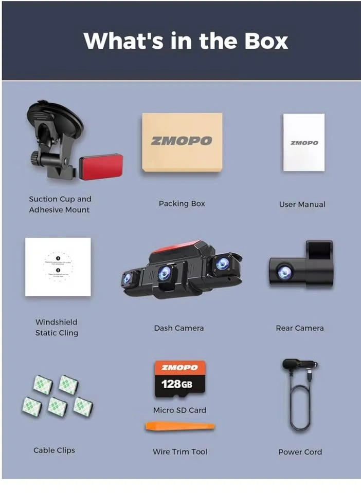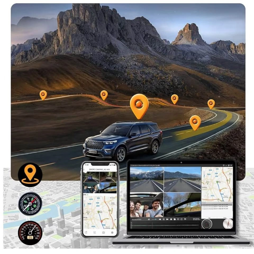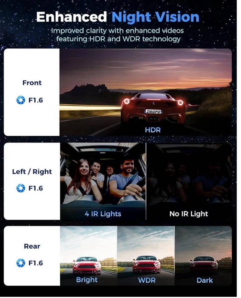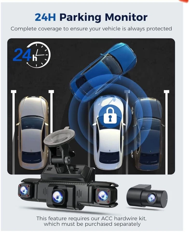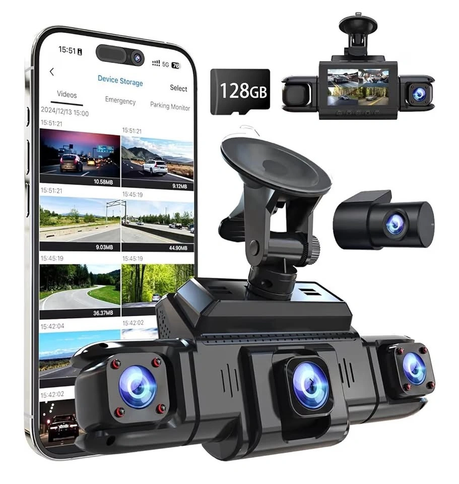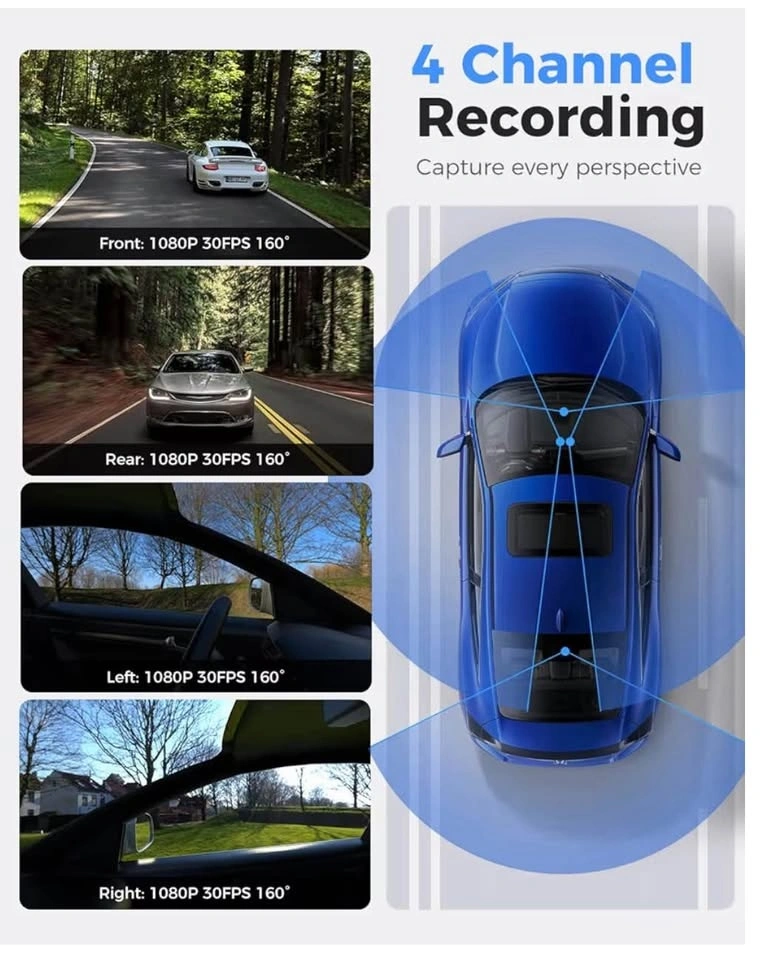 360 View 4 Channel Dash Cam Front and Rear Left Right Inside Camera for Cars, GPS and 5G Band WiFi, Night Vision, 160 Wide Angle, WDR, 24H Parking Mode, Supercapacitor, Included 128GB Card