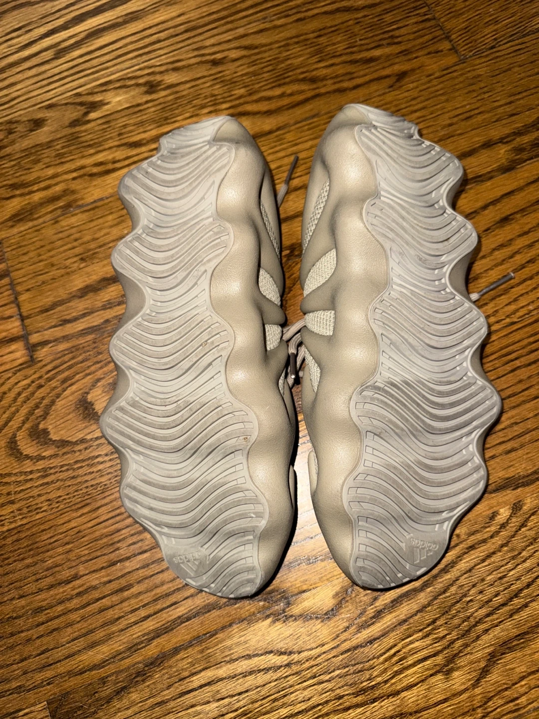 Selling a pair of Adidas Yeezy 450 in the Stone Mist colorway. These are a unique and stylish shoe that are sure to turn heads. The condition is good, with some signs of wear. Grab them while you can!