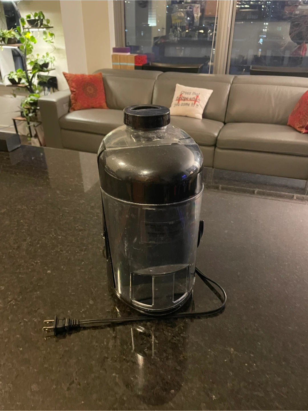 Hamilton Beach electric juicer in black. It's designed for making fresh juice. Features a pulp collector and easy-to-clean stainless steel strainer.