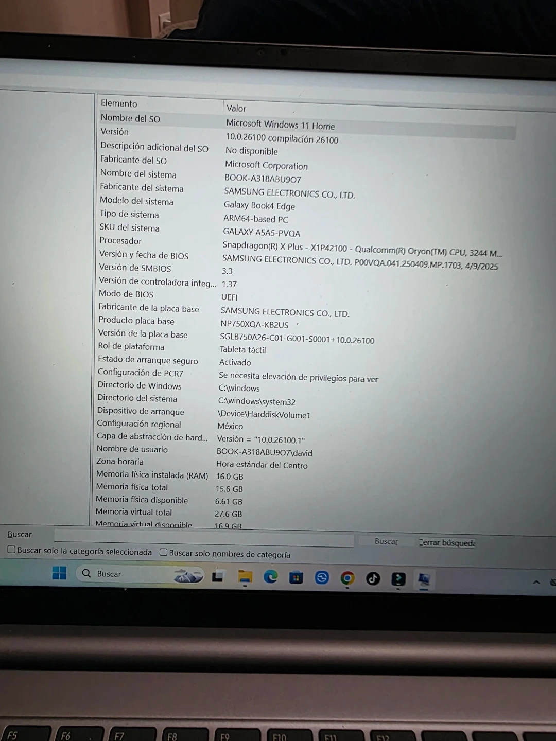 Selling a Samsung Galaxy Book4 Edge laptop. It comes with Windows 11 Home. It has 16 GB of installed RAM and 6.61 GB of physical memory. The laptop also has a Snapdragon processor.