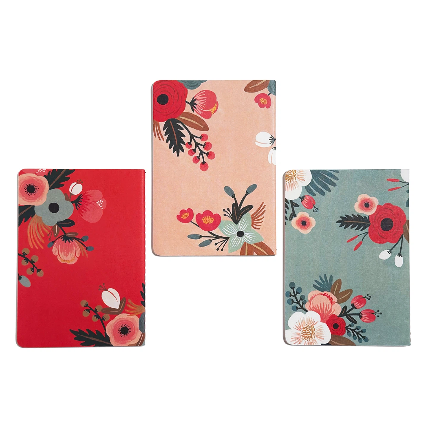 A set of 3 notebooks from Botanicals Collection by the acclaimed stationery brand Rifle Paper Co. Feature foil-stamped covers and interior pages adorned with vintage-inspired graphic details.
