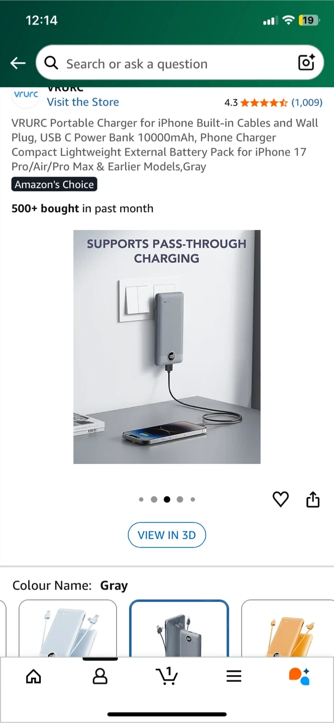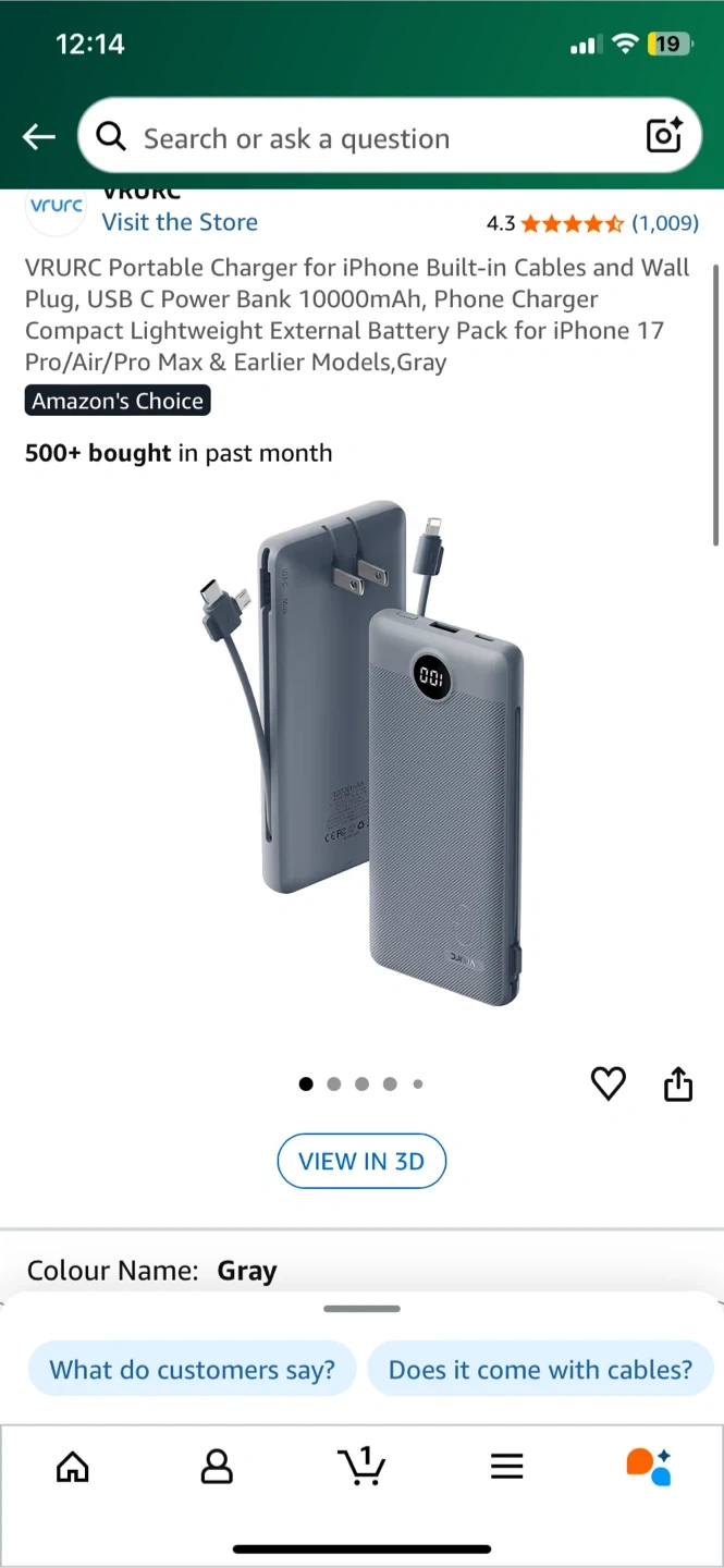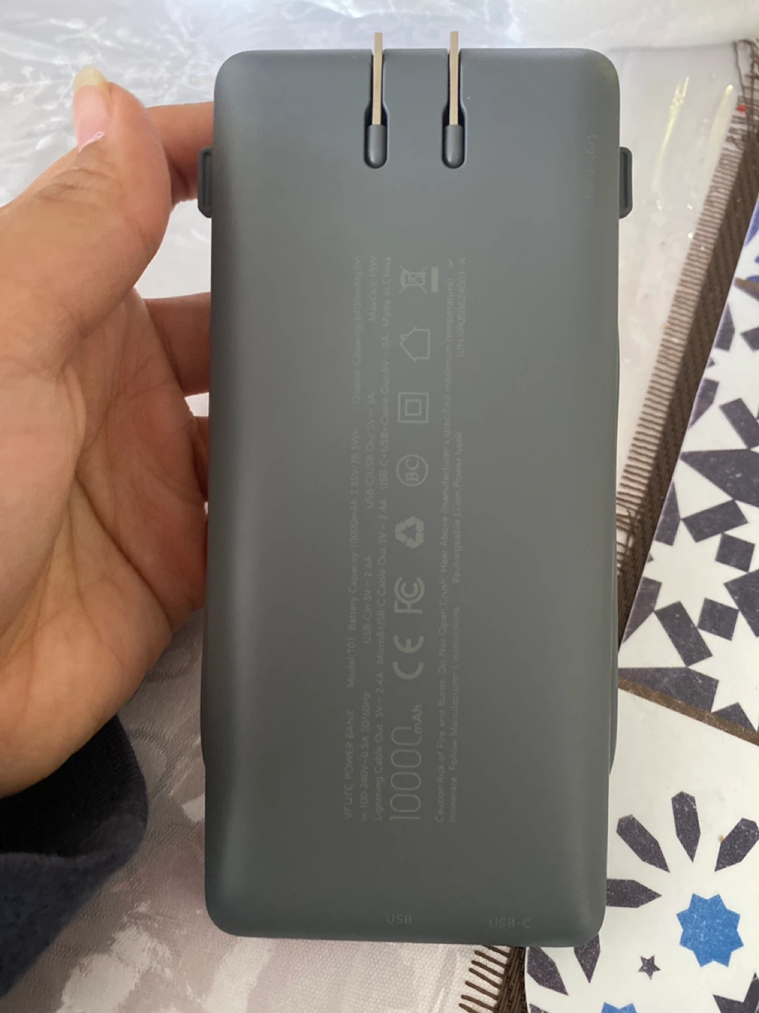 Selling a VRURC portable charger in gray! It's a 10000mAh power bank with built-in cables and a wall plug. It's lightweight and compact, perfect for charging your iPhone 17 Pro/Air/Pro Max and earlier models, as well as other devices with USB-C