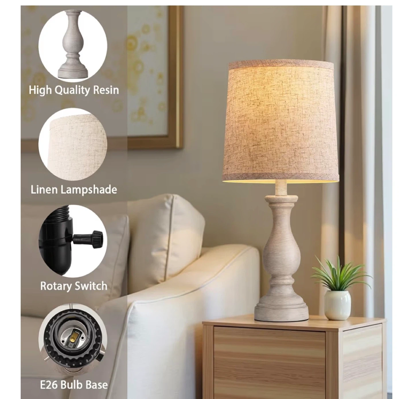 Selling a brand new Seealle farmhouse table lamp! It's still in the box with all components included. This rustic lamp features a linen lampshade and a high-quality resin base, perfect for adding a touch of farmhouse charm to your living room, bedroom, or office. It has a rotary switch and an E26 bulb base. Get this beautiful lamp today!
