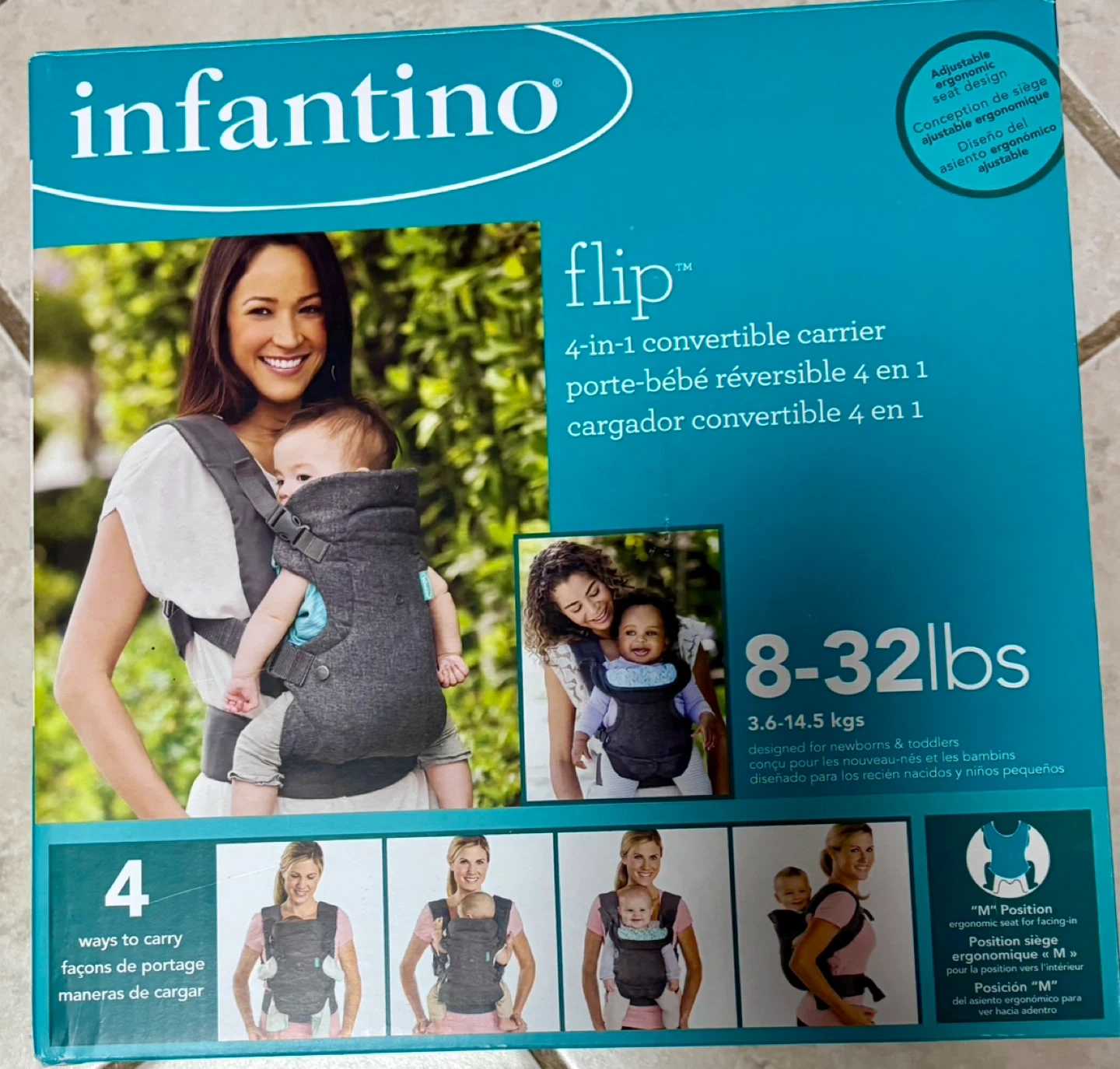Selling an Infantino Flip 4-in-1 convertible baby carrier, perfect for newborns and toddlers! It supports babies from 8-32lbs (3.6-14.5 kgs).