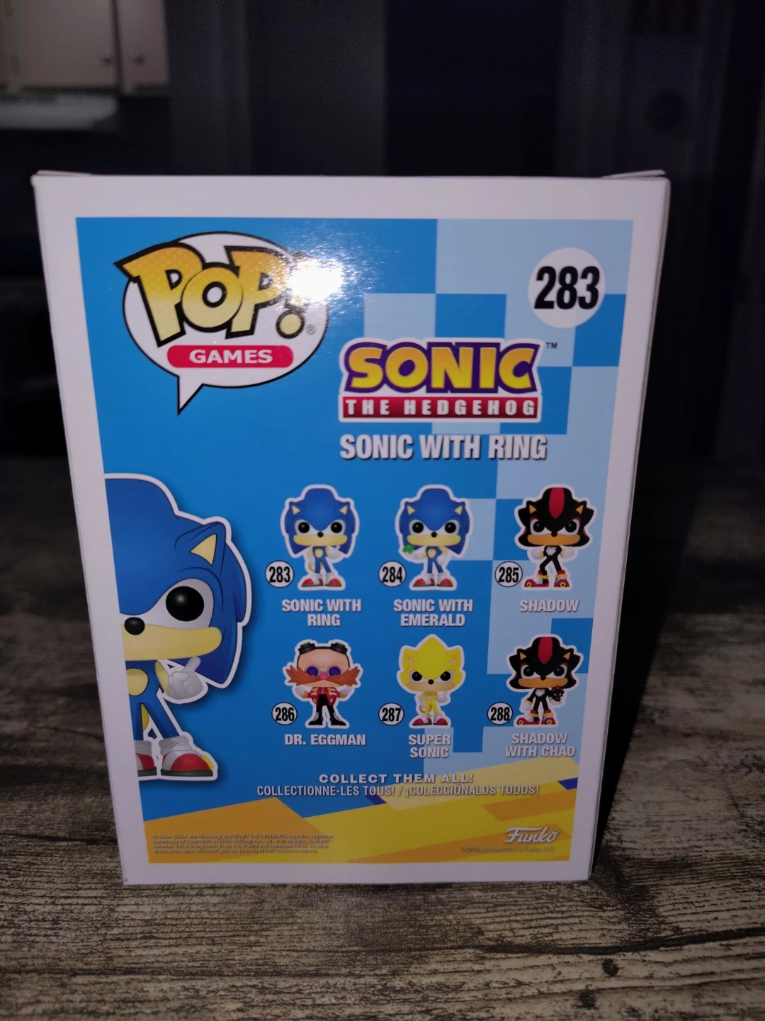 Selling a Funko Pop! Games figure of Sonic the Hedgehog with a Ring. This is number 283 in the series. Collect them all!