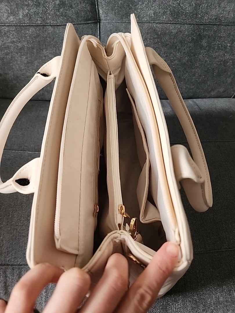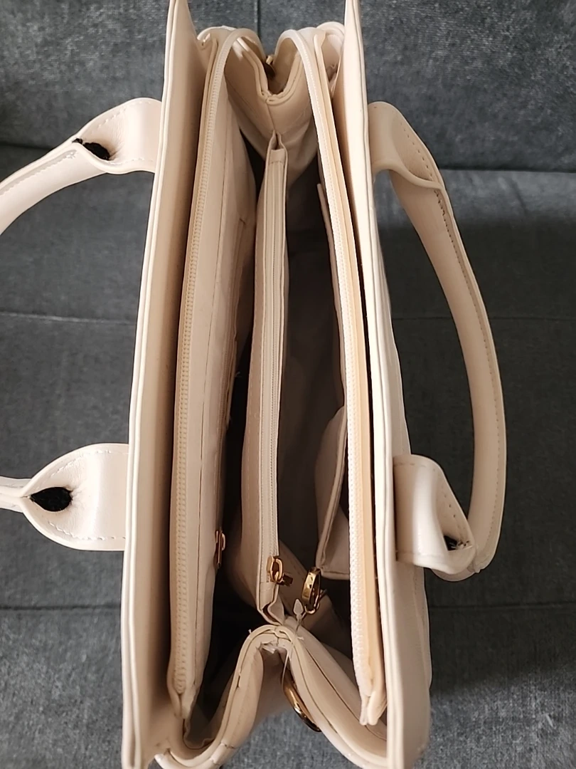Selling a Jenny Fairy handbag in a lovely beige color. It features a stylish quilted design and comes with an additional strap. It has multiple compartments inside to keep your belongings organized!