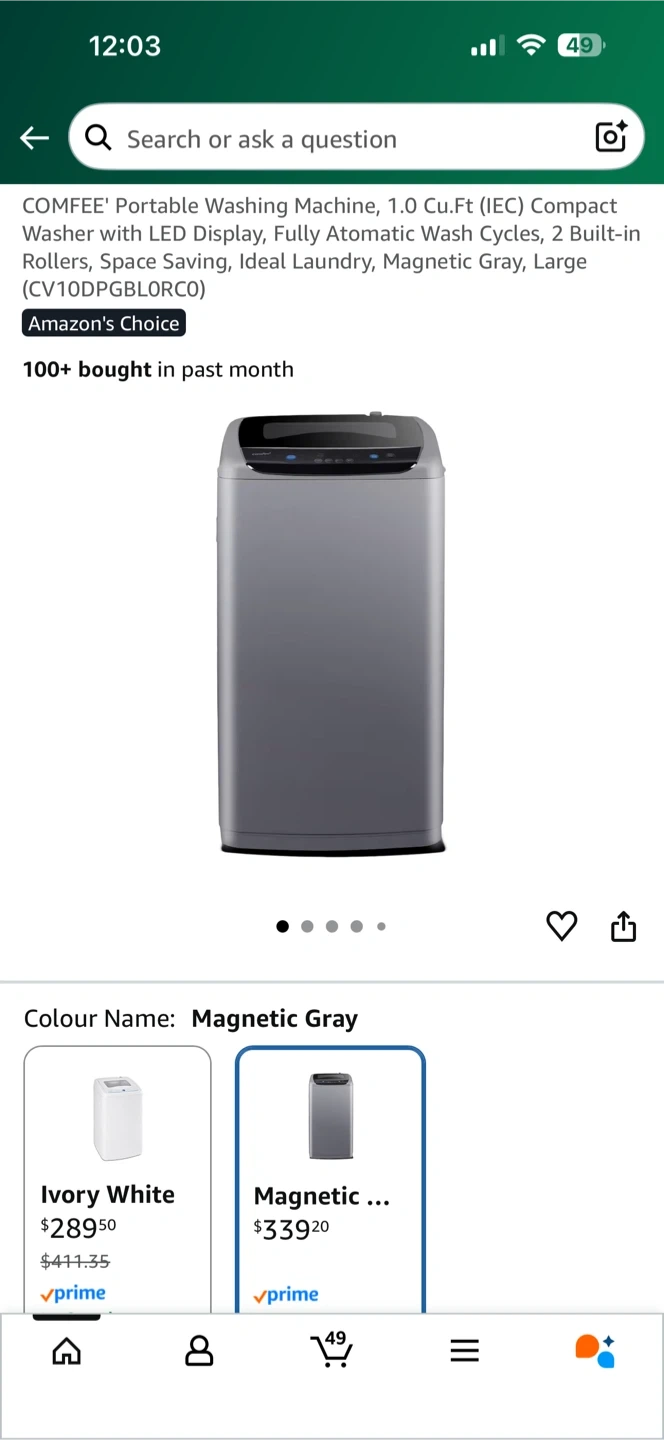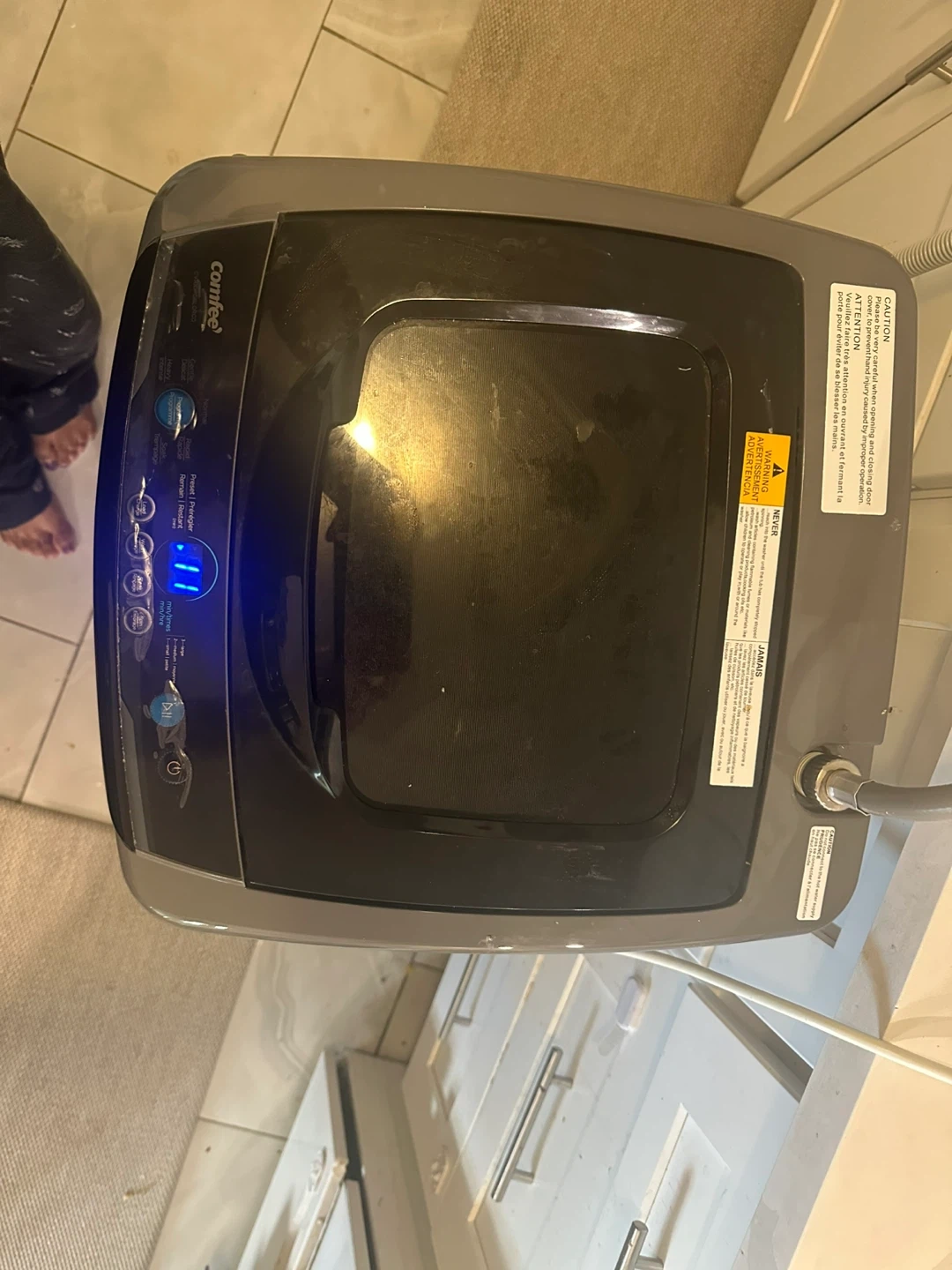 Selling a Comfee' portable washing machine in magnetic gray. It's a compact washer with a 1.0 Cu.Ft (IEC) capacity. It features LED display, fully automatic wash cycles, 2 built-in rollers, and space-saving design, making it ideal for laundry. Originally bought for $339.20