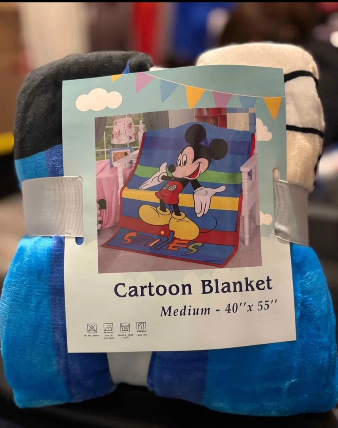 Selling a brand new Mickey Mouse cartoon blanket! It's medium size, measuring 40" x 55". The blanket features a colorful Mickey Mouse design that any child would love!