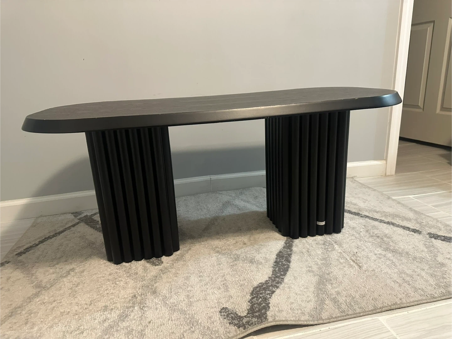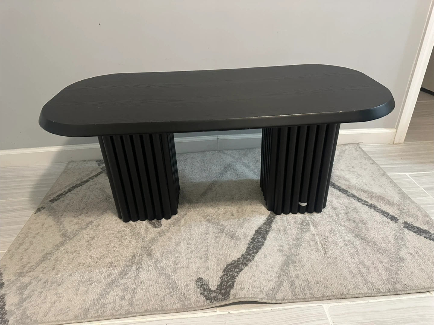 Selling a fluted leg coffee table black, It measures approximately 42 inches in length and 20 inches in width and 18 inches high. It's a stylish piece that would look great in any living room!