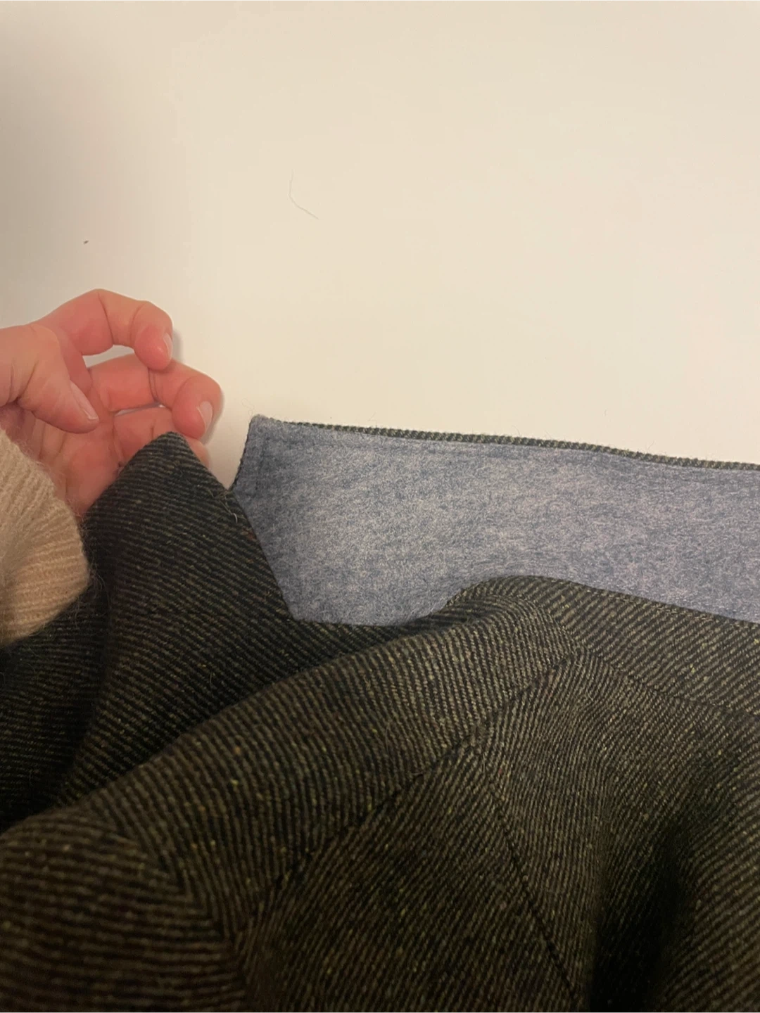 Under-collar melton helps keep shape and adds style when the collar is turned up.