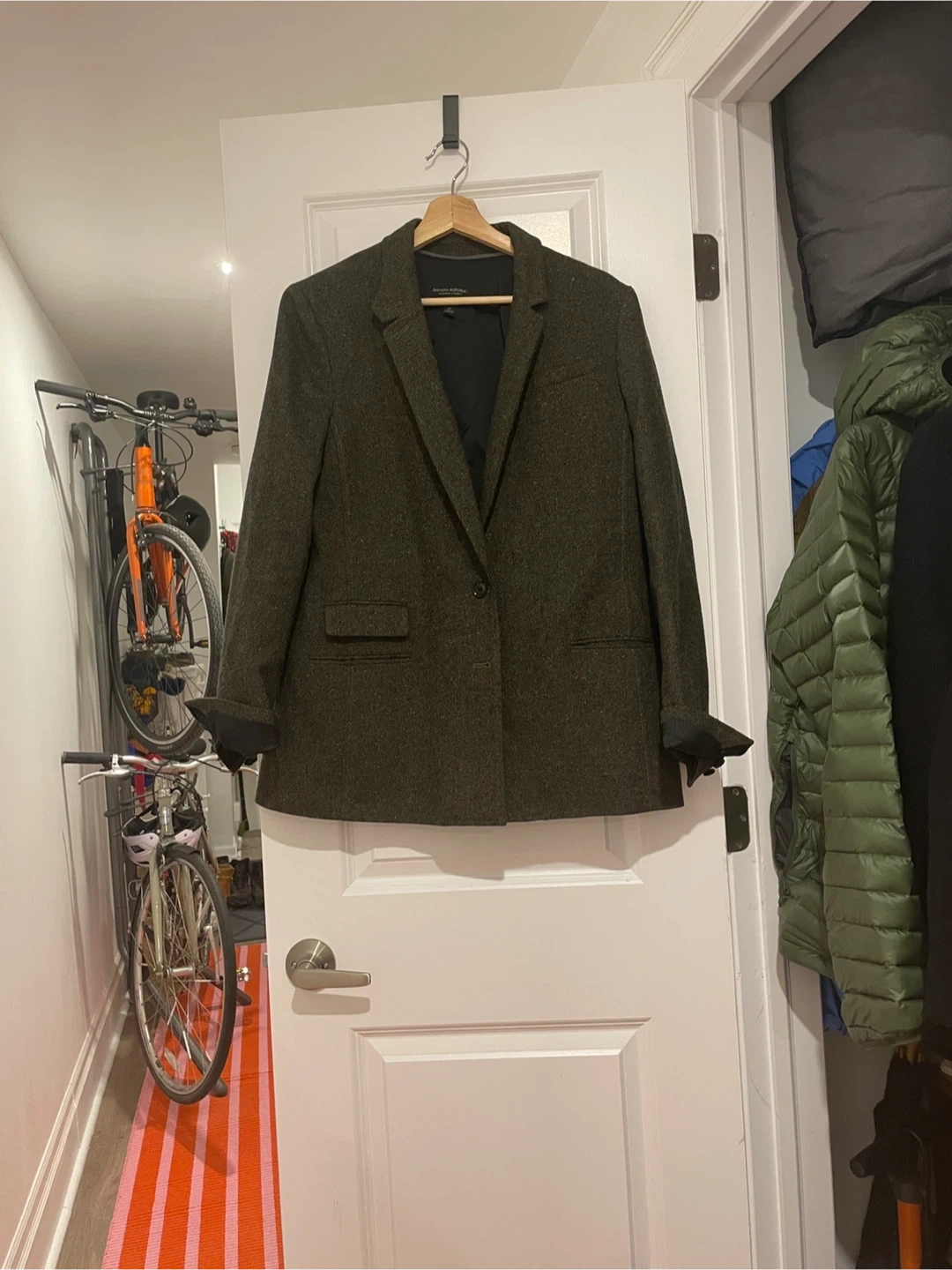 Selling a Banana Republic blazer in a wool blend. It's a stylish and versatile piece that would be a great addition to any wardrobe!