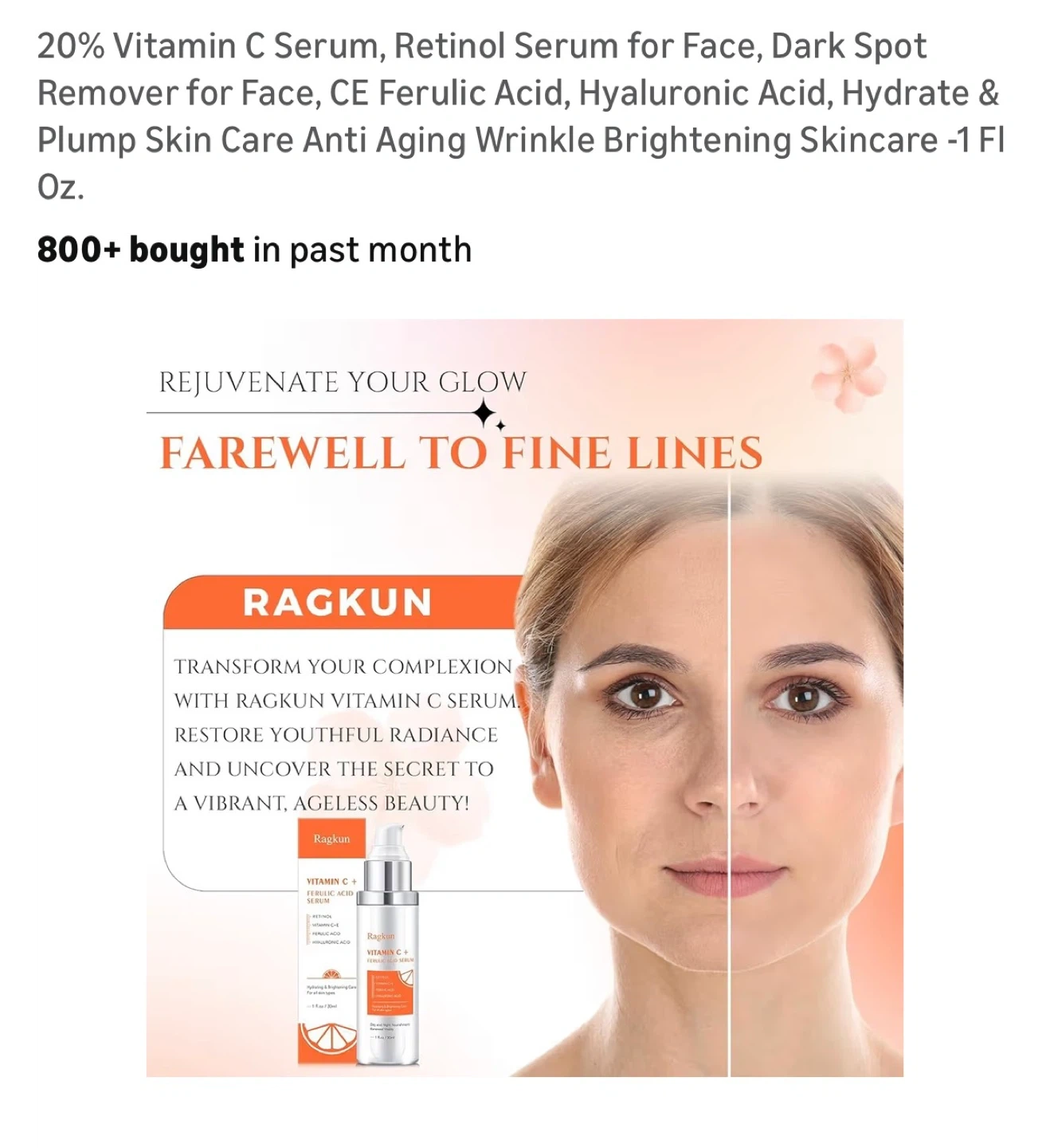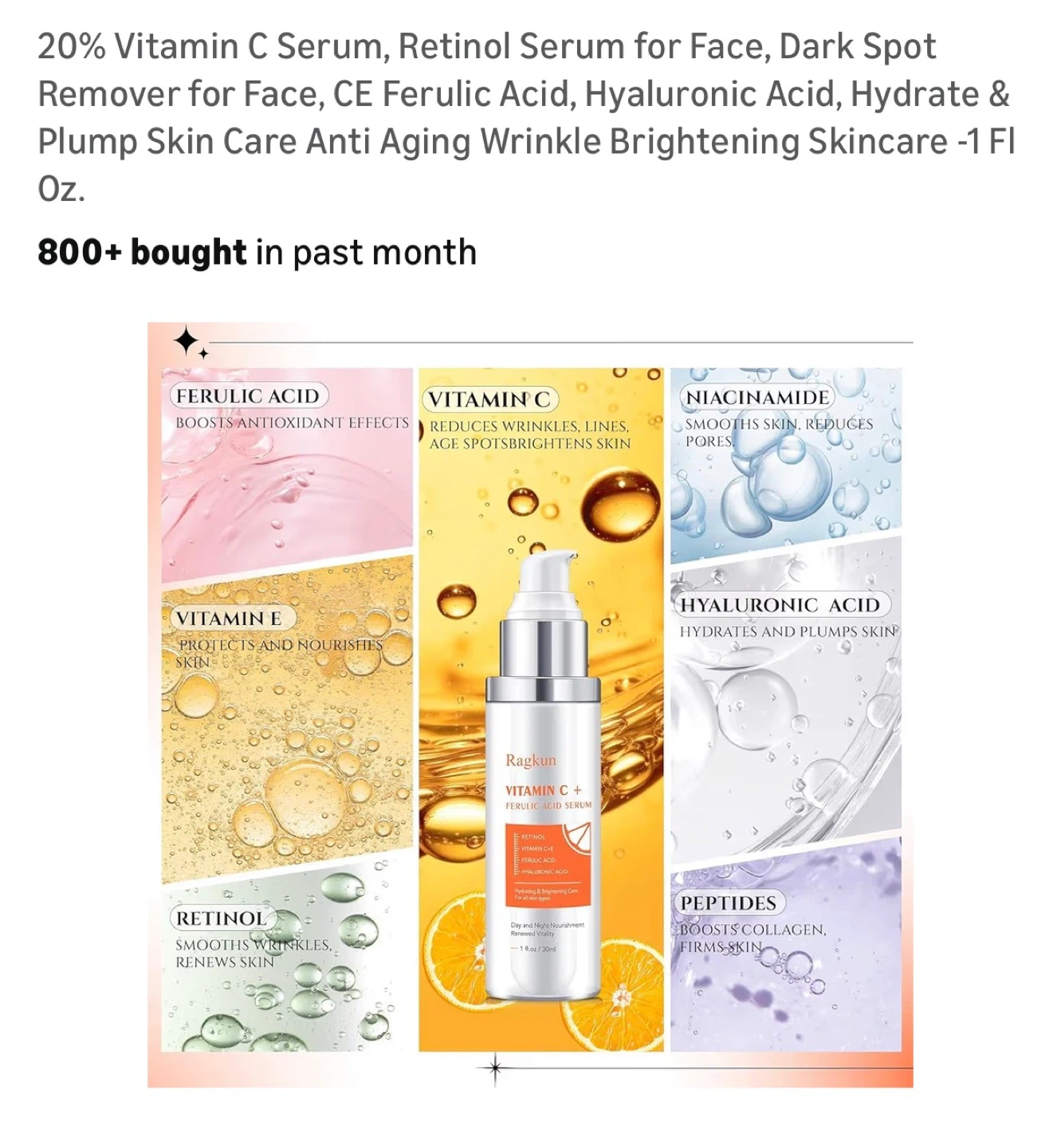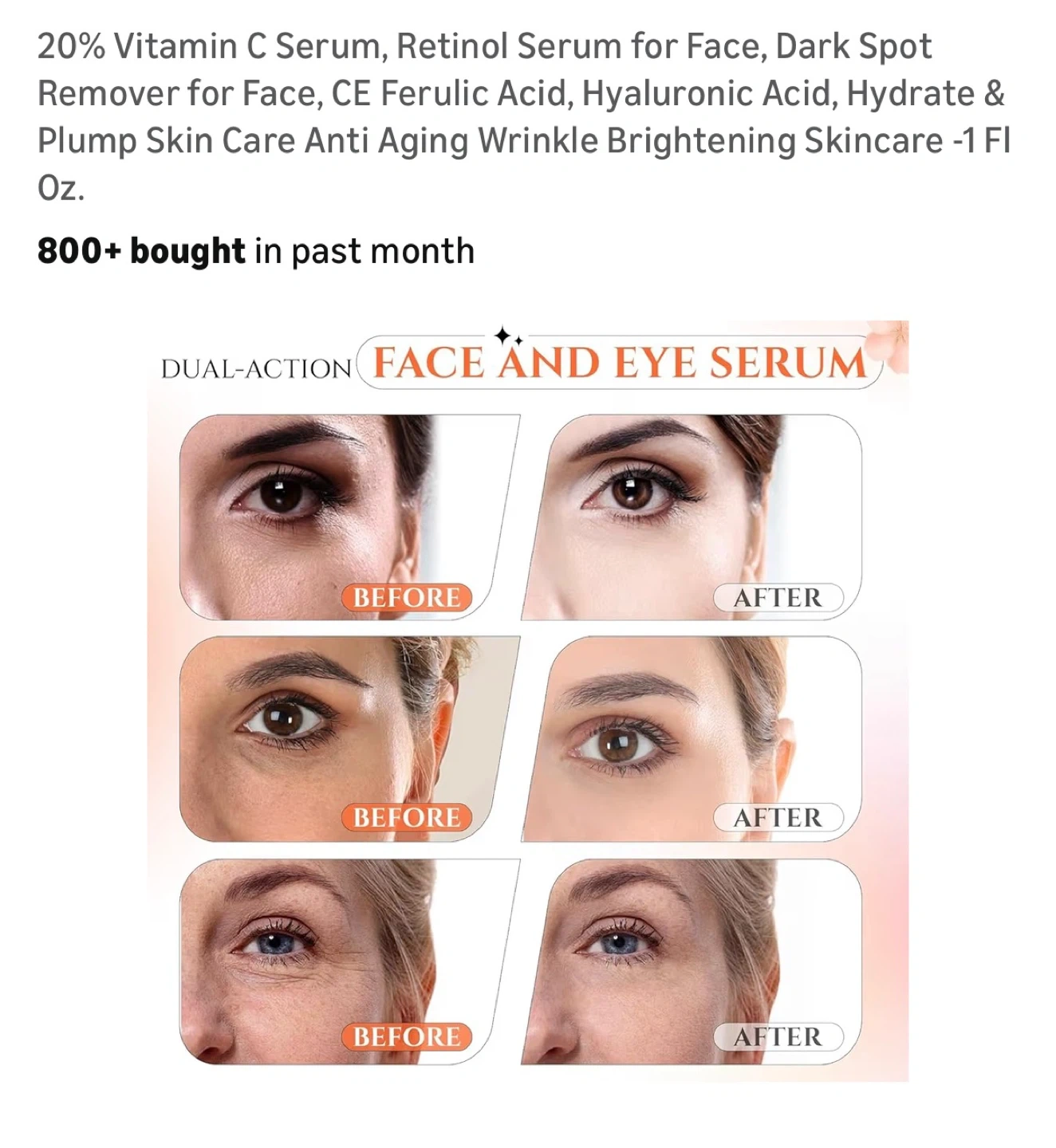 20% Vitamin C Serum, Retinol Serum for Face, Dark Spot Remover for Face, CE Ferulic Acid, Hyaluronic Acid, Hydrate & Plump Skin Care Anti Aging Wrinkle Brightening Skincare -1 Fl Oz.