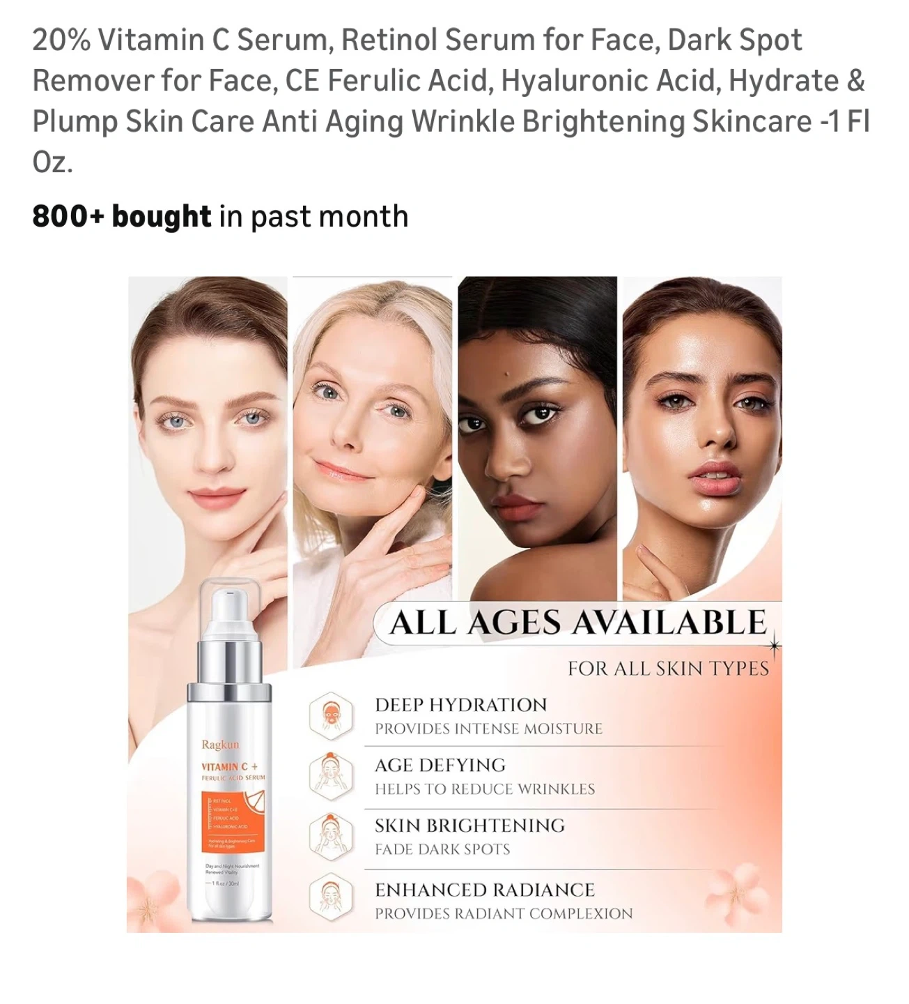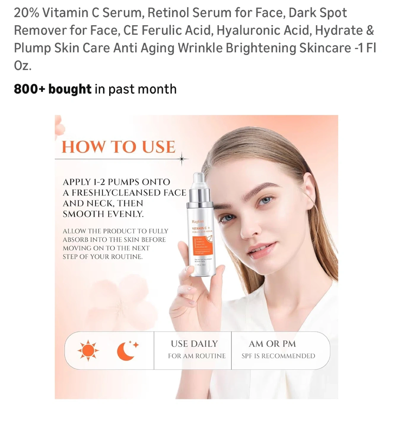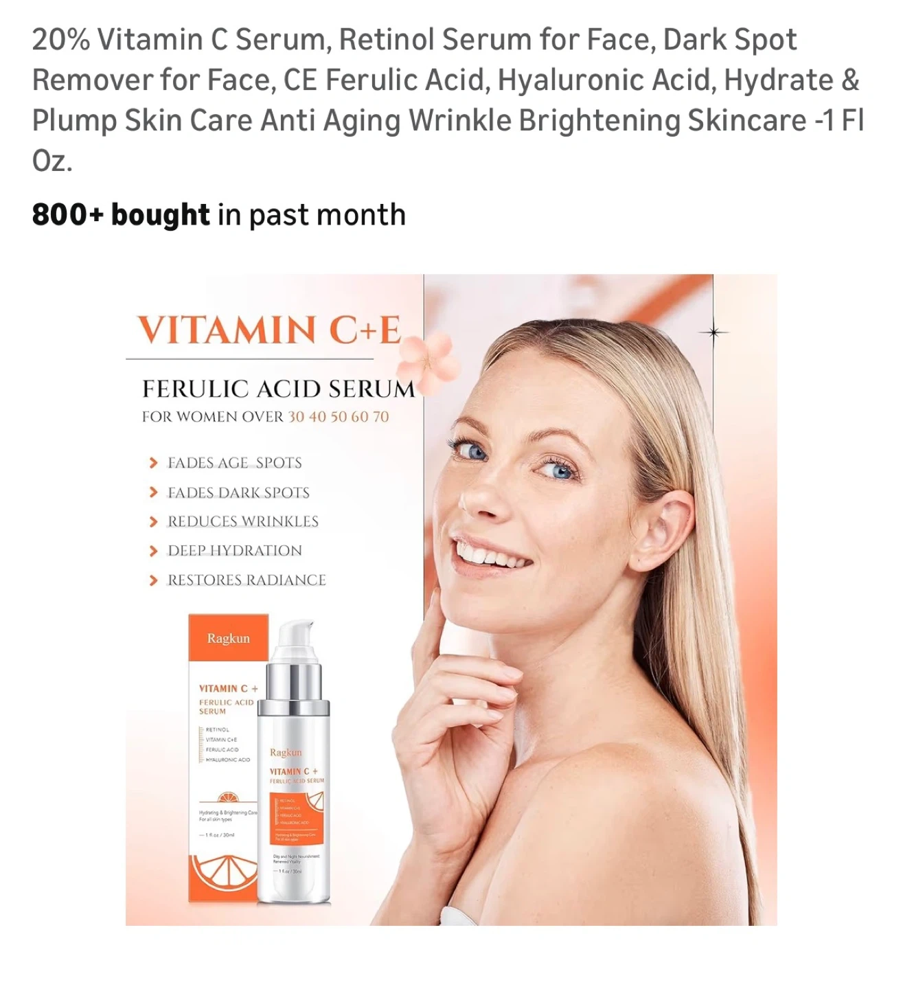 20% Vitamin C Serum, Retinol Serum for Face, Dark Spot Remover for Face, CE Ferulic Acid, Hyaluronic Acid, Hydrate & Plump Skin Care Anti Aging Wrinkle Brightening Skincare -1 Fl Oz.