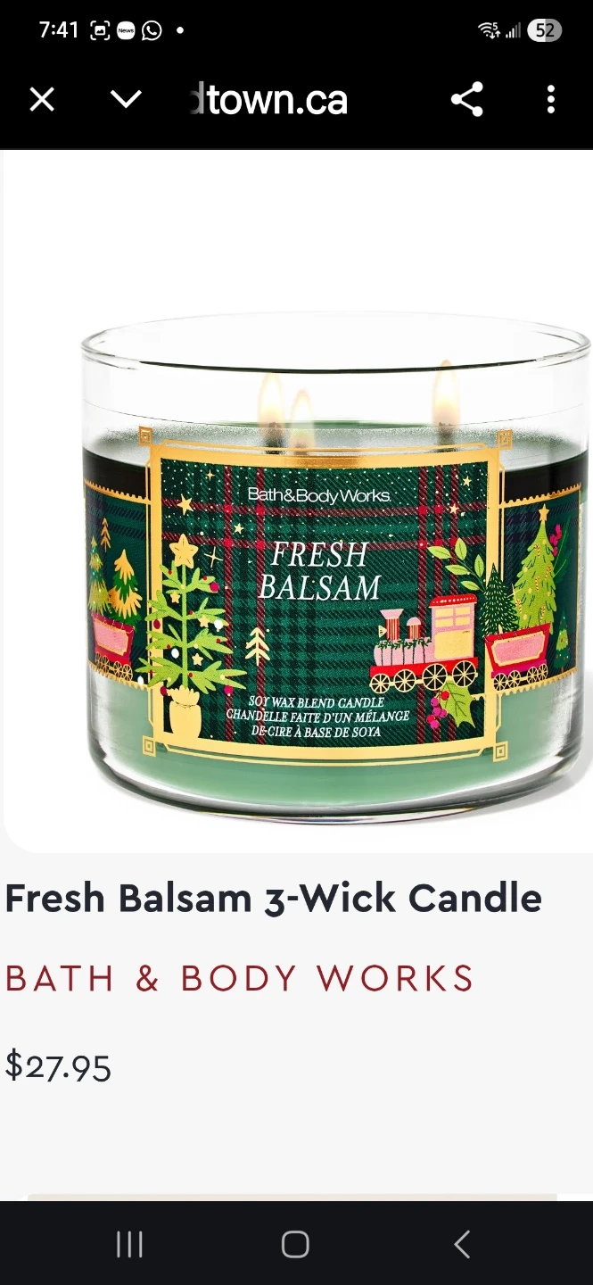 Selling a Bath & Body Works Fresh Balsam 3-Wick Candle! This candle is made with a soy wax blend and premium, lead-free wicks. It delivers an amazing, room-filling fragrance experience and can burn for up to 45 hours. The candle is in a ceramic jar and contains 14.5 oz / 411 g of wax. Sells new $27.95. Smells crisp and fresh, like walking through the woods!