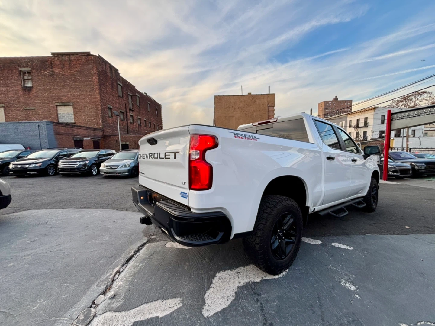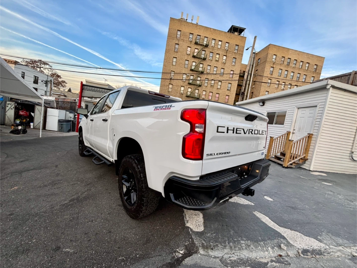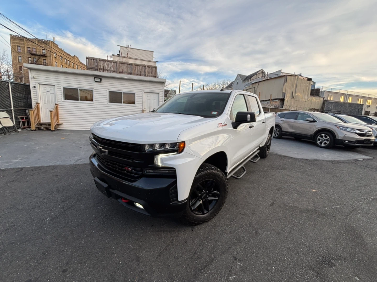 Selling a Chevrolet Silverado truck. It's white with black wheels and has a Trail Boss trim. The truck has a crew cab and is in good condition. Perfect for anyone needing a reliable and stylish pickup!