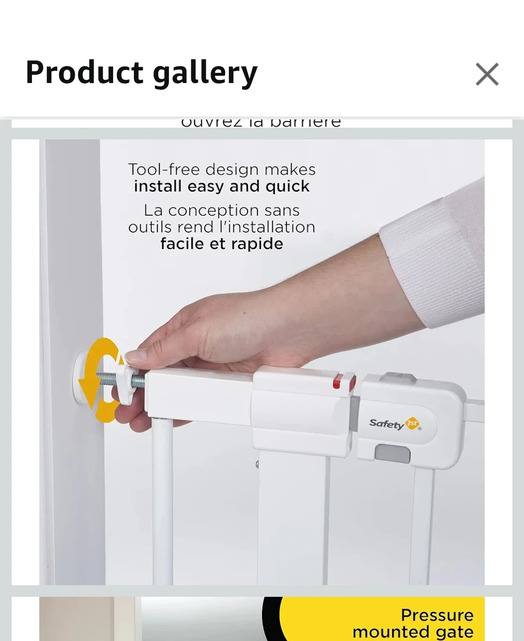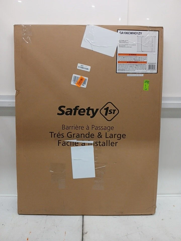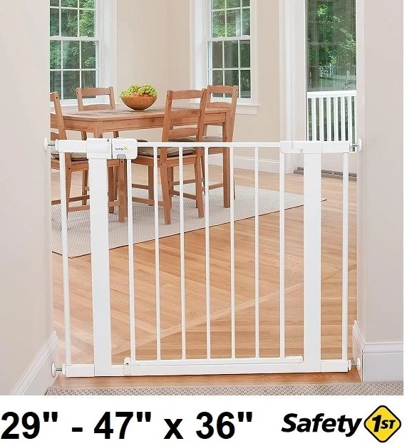 This Safety 1st Tall and Wide Easy Install Safety Gate, is perfect for keeping your little ones safe and secure. This gate fits openings 29-47 inches wide and stands 36 inches tall, providing a secure barrier while still being easy for adults to open. It's in new condition and comes in its original packaging.