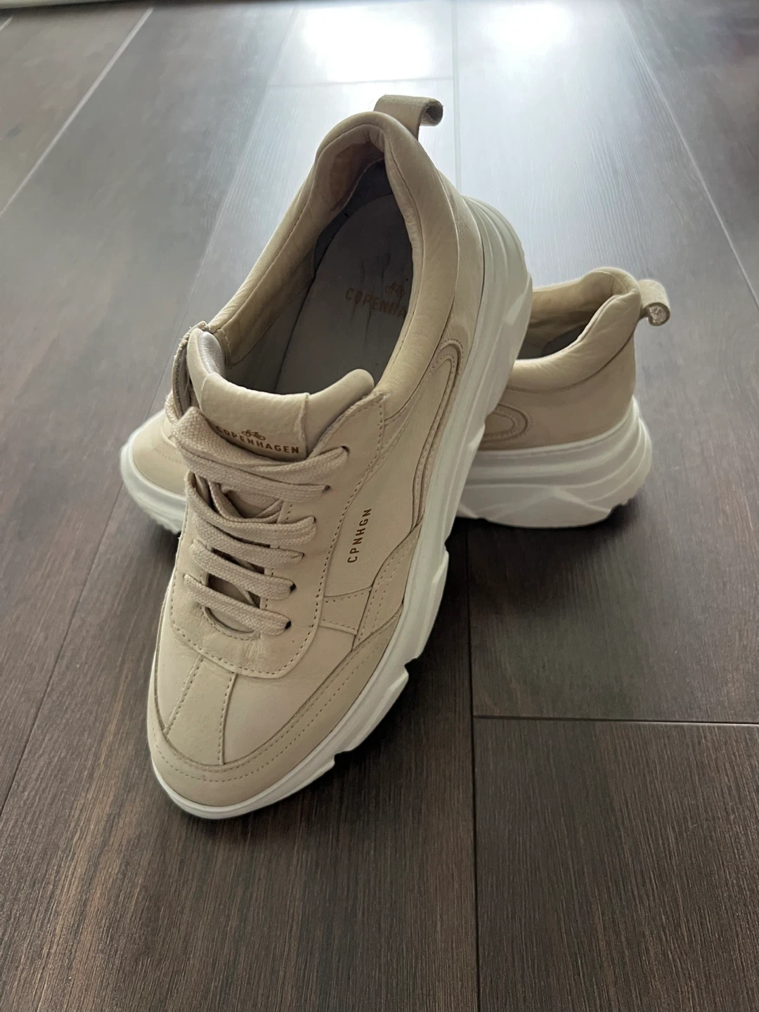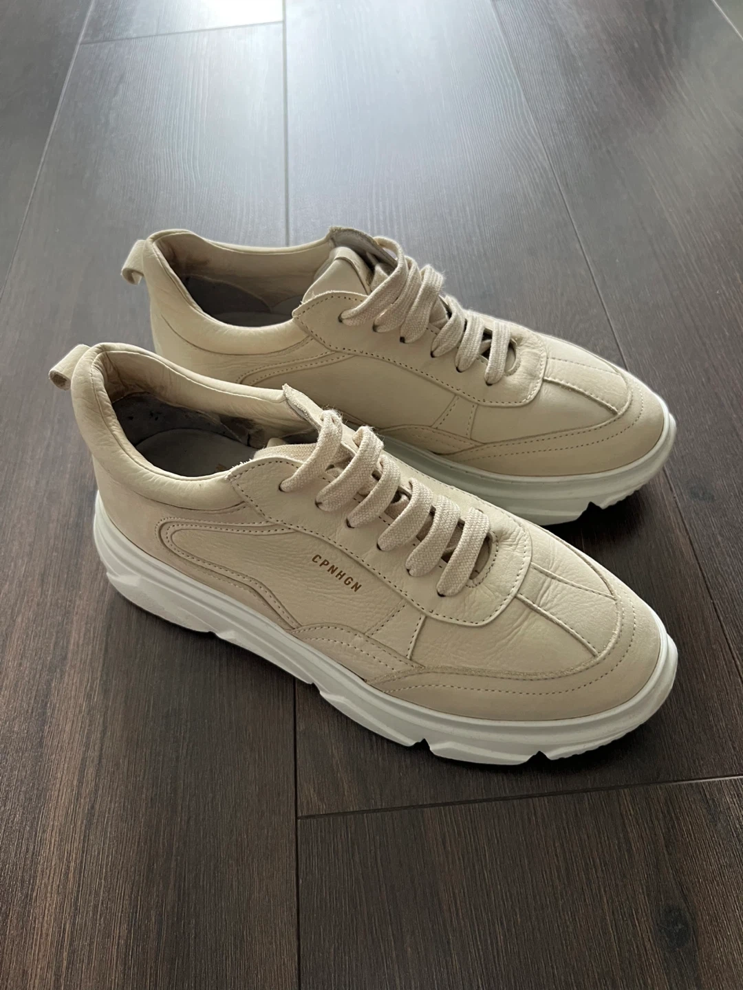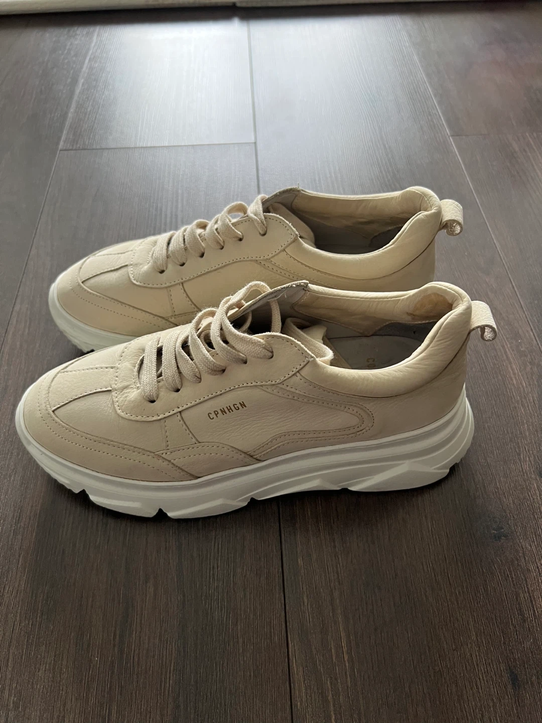 Selling a pair of CPNHGN (Copenhagen) beige leather sneakers, size 37 EU (they run small). Worn only a few times; selling because they are too small.