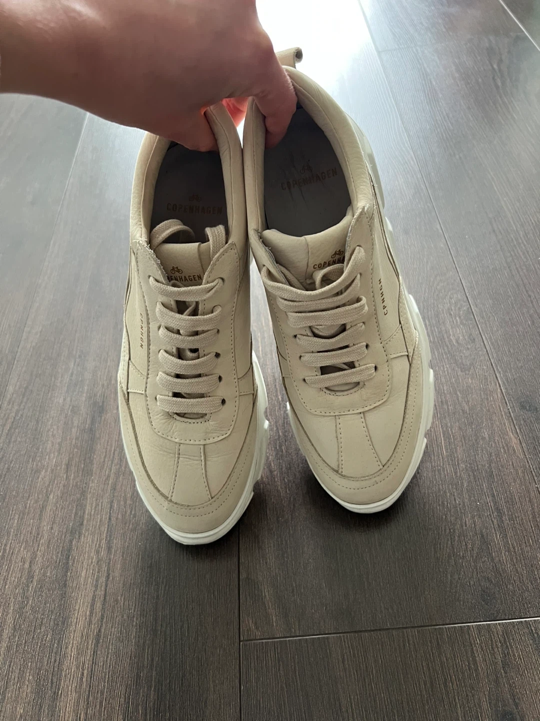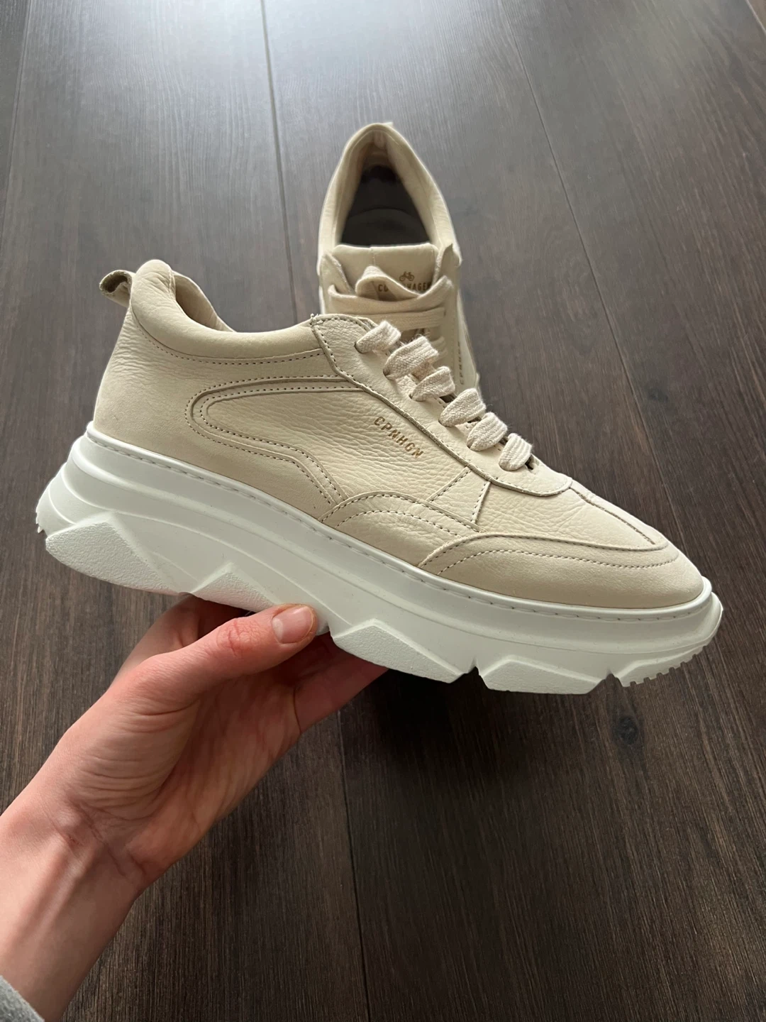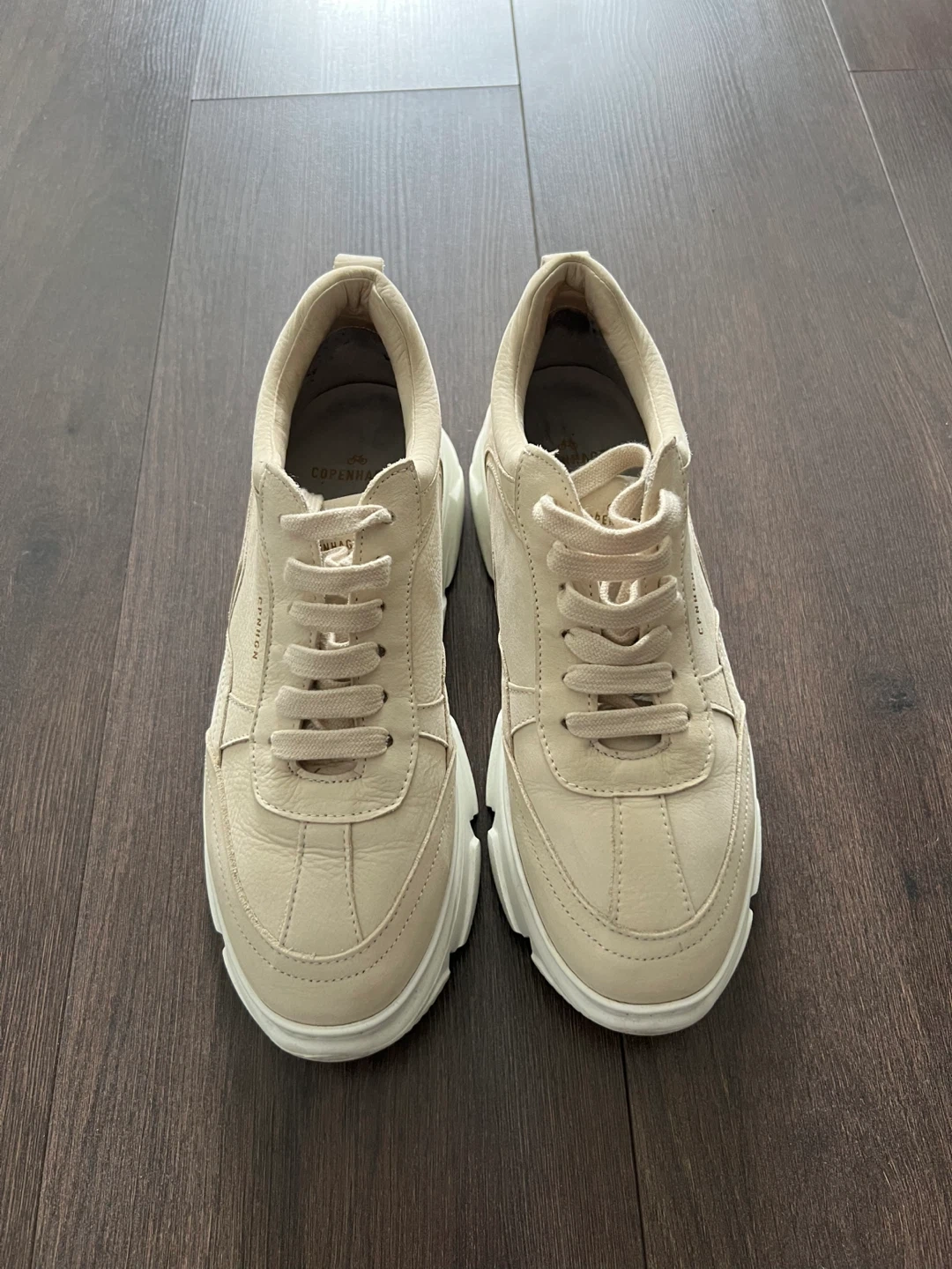 Selling a pair of CPNHGN (Copenhagen) beige leather sneakers, size 37 EU (they run small). Worn only a few times; selling because they are too small.