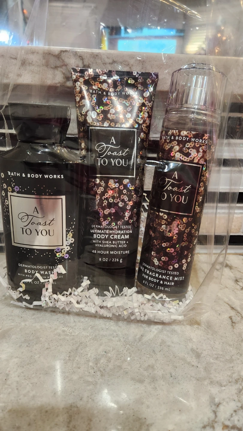 I'm selling a Bath & Body Works gift set! Each set includes a fragrance mist, body wash, and body cream,