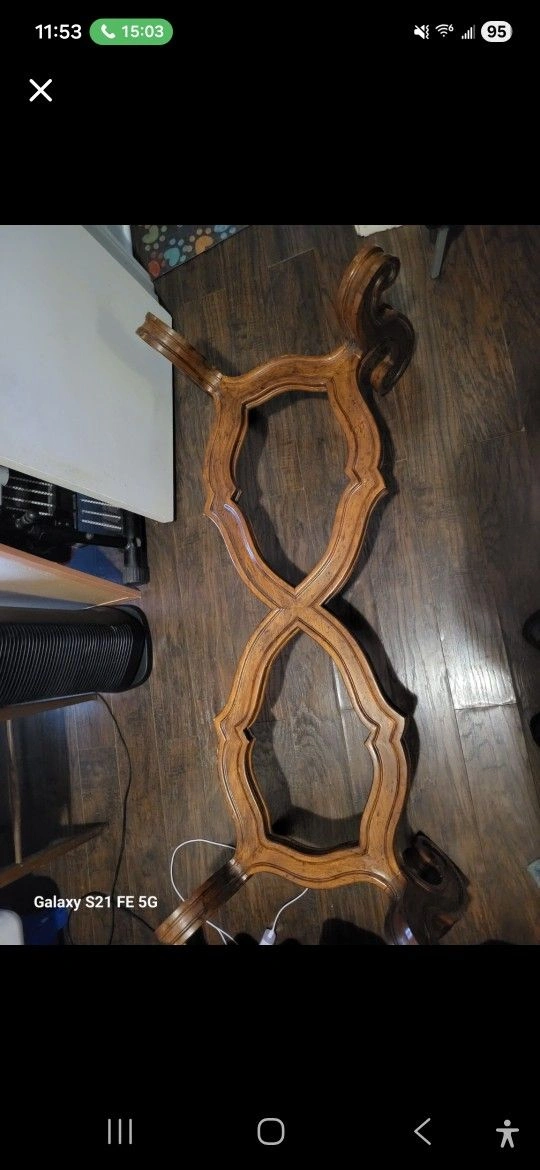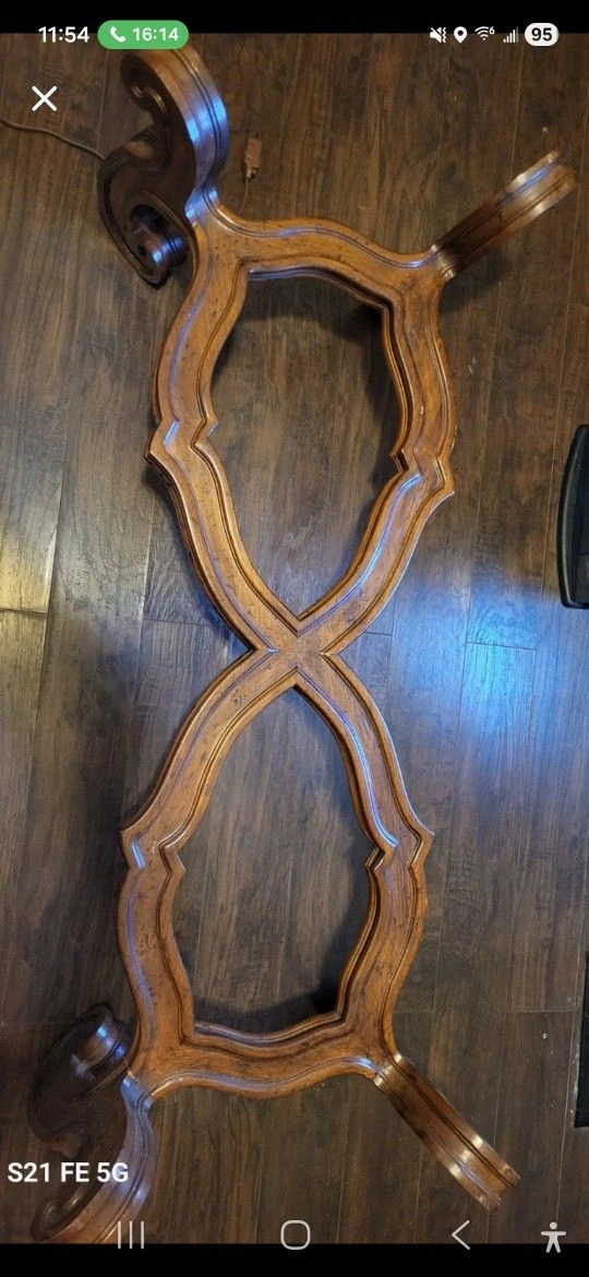 Beautiful vintage solid wood table base with ornate carved details.