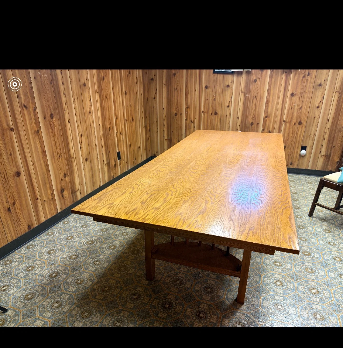 Selling a oak dining table. It's a sturdy table with a classic design that would fit well in any dining room or kitchen. It has a shelf underneath for storage or decoration