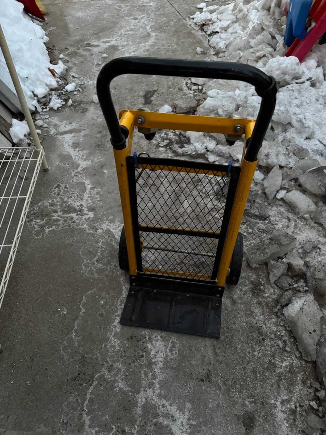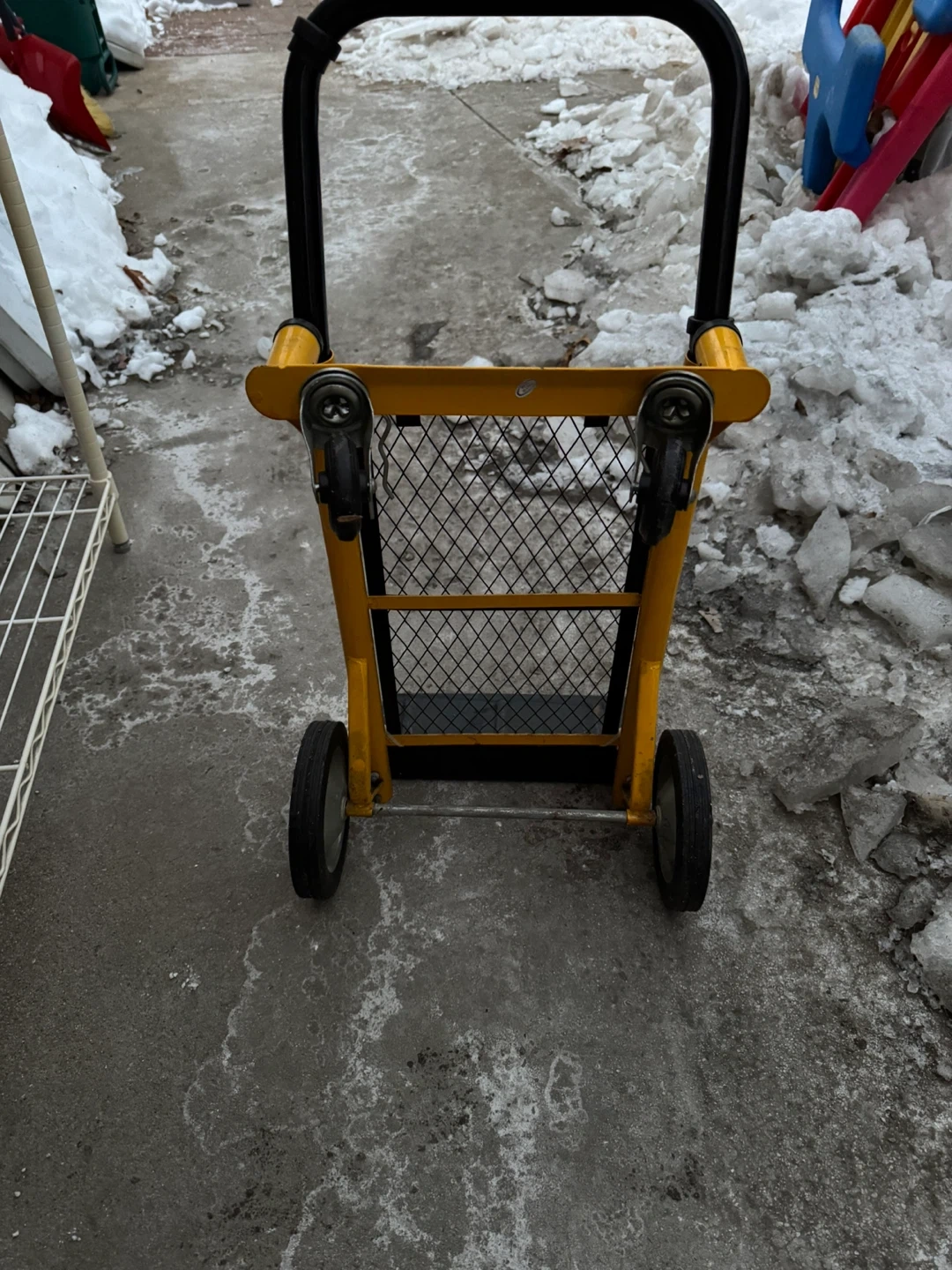 Selling a yellow utility cart. It's in good condition and ready to help with your moving or hauling needs! It's easy to maneuver and perfect for various tasks around the house or workplace