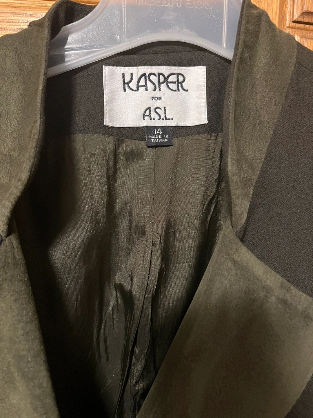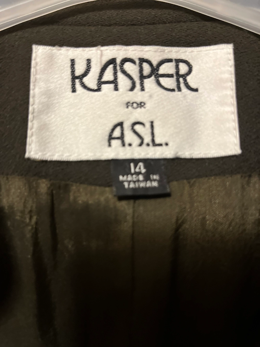 Kasper for A.S.L. skirt suit in size 14. It's a stylish and professional outfit, perfect for work or special occasions. The suit is in great condition and ready for a new home!