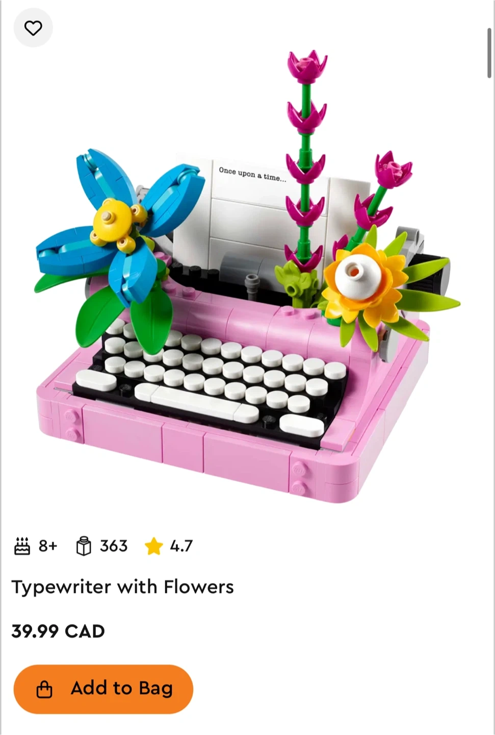 Selling a Lego Typewriter with Flowers set! This charming set includes the typewriter itself, adorned with colourful flowers. It's a delightful build and a beautiful display piece. Its in great condition has no missing piece.